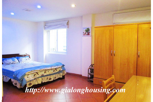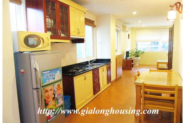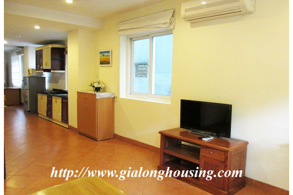 This is a bright and nice apartment in Nguyen Huy Tu street, near Yersin flower garden, Pasteur garden, Vietnam Russian hospital, Old Quarter. The total area is 65 sq m with 01 bedroom, 01 bathroom, a modern kitchen and a bright living room. The rent is included some services: tap water, wireless internet, cable TV.