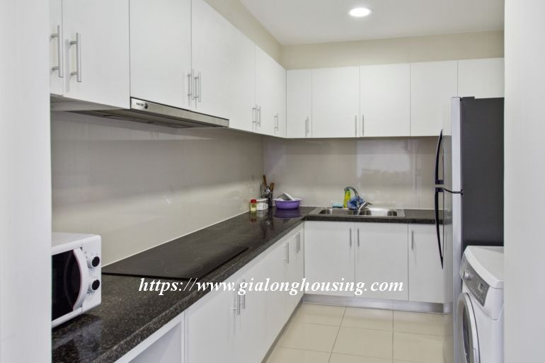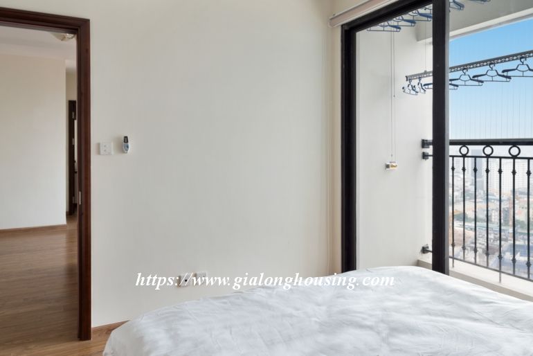 This nice apartment is located in the high floor of Times City building, with an open view from balcony and windows. The total area is 87 sq m, including 02 bedrooms and 02 bathrooms. The tenants will enjoy the convenience of the most modern urban area in Hanoi with the underground shopping center, aquarium, cinema, swimming pool.