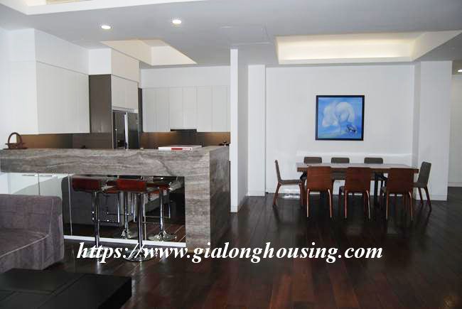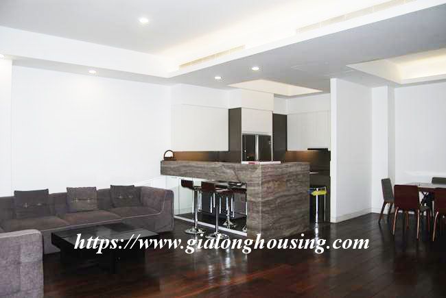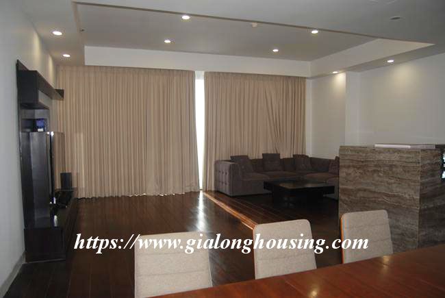 This apartment is very nice and bright with full of luxurious furniture. From any balcony and window, you will have a good view of Hanoi city. The total area is 217 sq m. There are 04 bedrooms and 03 bathrooms, suitable for a family and friends. The whole apartment is bright and has much fresh air due to the western design. The building has full services: security, swimming pool, car parking.