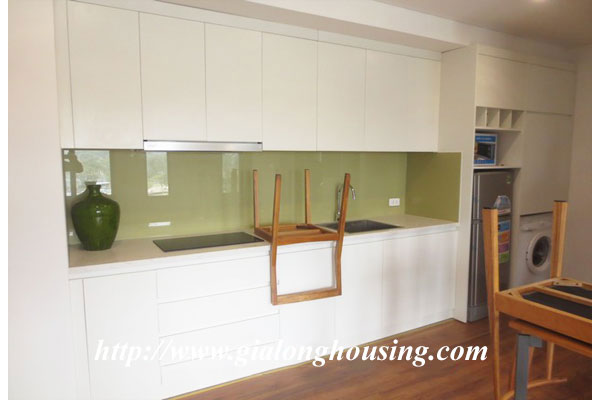 This is a very new building in the main road, close to Thong Nhat park, Ba Mau and Bay Mau lake. From the windows you can see the lake and enjoy the fresh air and cool breeze. The total area of one apartment is 80 sq m with all new furniture. There are 01 bedroom and 01 bathroom, suitable for both long and short term leasing time.