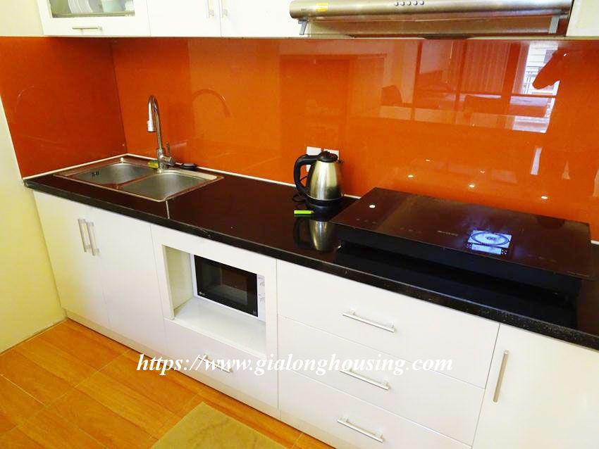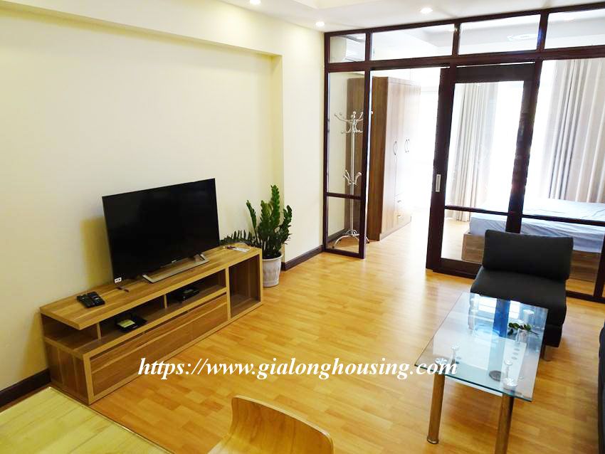 This cozy apartment is located in quite lane of Van Cao street. The whole apartment is bright and nice with small balcony and glass wall. The total area is 45 sq m, 01 bedroom and 01 bathroom. The location is good, not far from Lotte Tower, Japanese Embassy.
