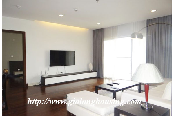 This is very modern and beautiful in the corner of Lancaster building, Nui Truc street, Ba Dinh district. All rooms are bright and nice with large glass windows. The furniture are high quality and comfortable for all your demands. The total area is 142 sq m with 03 bedrooms and 03 bathrooms.