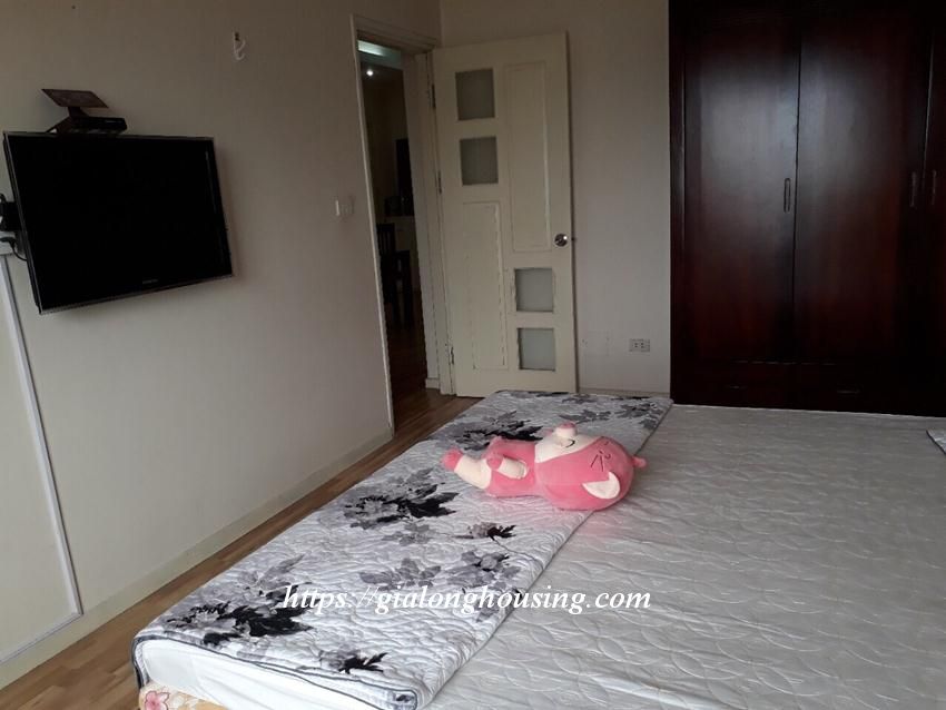 This corner apartment is located in 130 Doc Ngu building, the area has 24/24 security, playground for kids. The total area is 90 sq m, including 02 bedrooms and 02 bathrooms. The whole apartment luxuriates into the sunlight and fresh air with the open view. The building is not far from both West lake and city center.