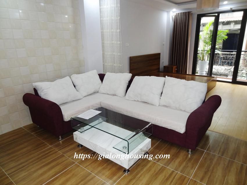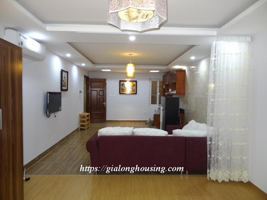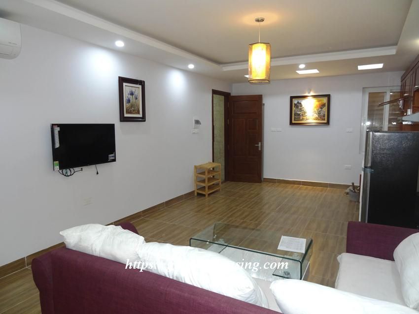 This brand new apartment is located in Hoang Cau, not far from Hoang Cau lake. The whole apartment luxuriates into the sunlight and fresh air coming from the windows and balcony. The total area is 50 sq m, the bed is separated by the nice curtain. The rent includes : cable TV, wireless internet, tap water and cleaning service.