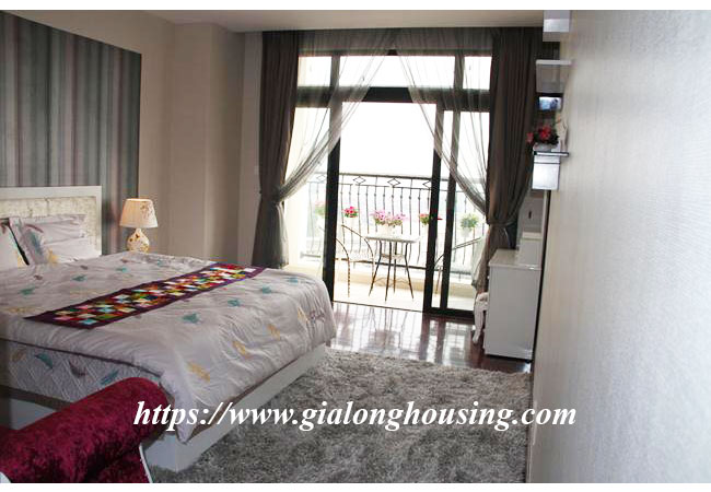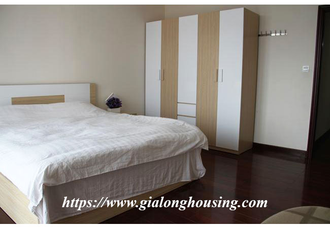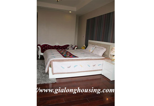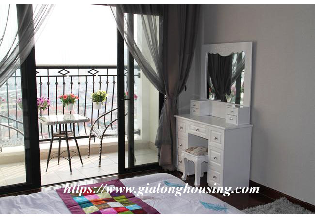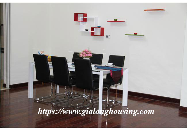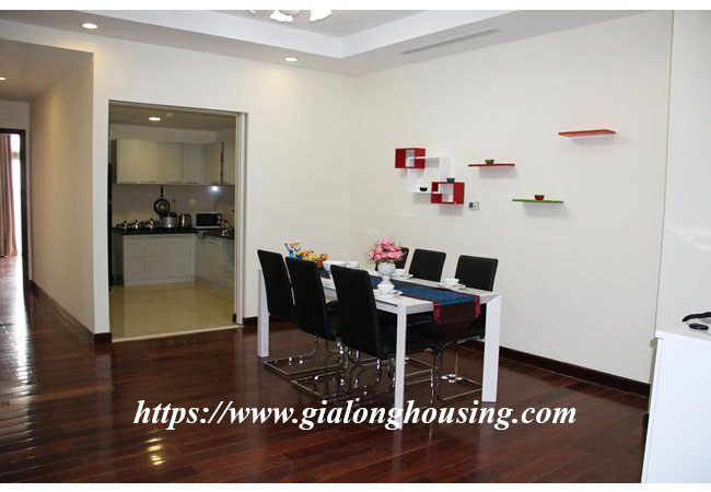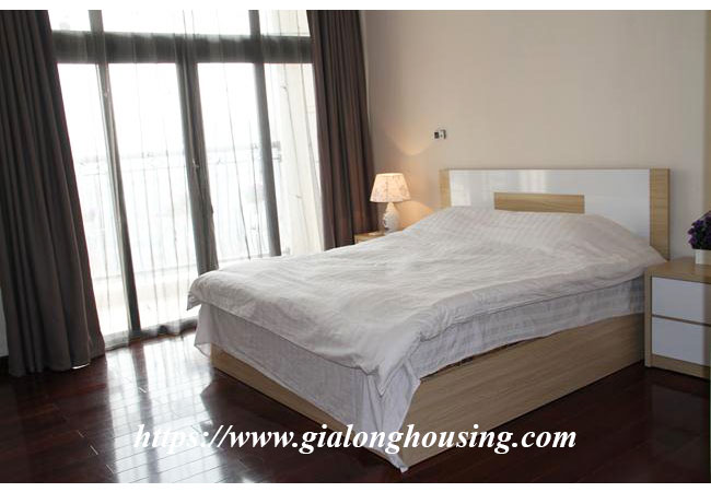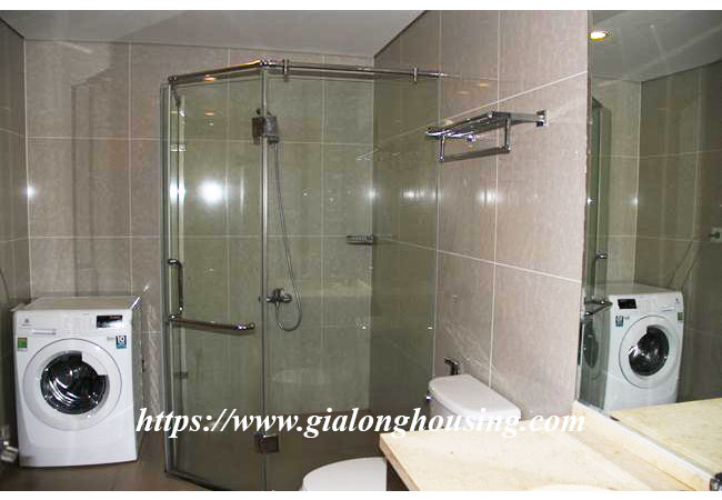 This apartment is very bright with the natural light coming through the glass windows and balcony. The total area is 112 sq m with 02 bedrooms and 02 bathrooms. The furniture and equipment are modern and convenient for the tenants to stay in long time. The tenants also enjoy high quality services: indoor and outdoor swimming pool, underground shopping center, international schools.