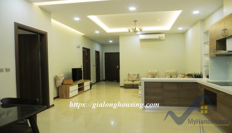 This nice apartment is located in the middle floor of CT2 building, with a nice view and lots of light from the balcony. The total area is 99 sq m, including 02 bedrooms, 01 multi-functional room and 02 bathrooms. The living room is combined to the kitchen. The whole apartment is fully furnished in western design. The building has security, gym, swimming pool, supermarket.