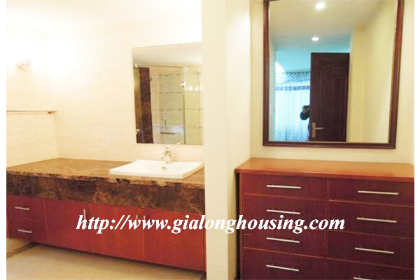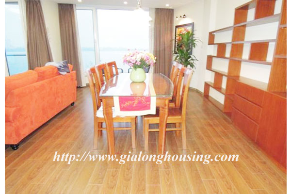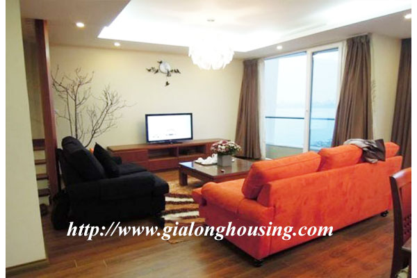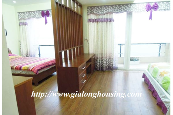 This is a very big and bright duplex apartment in the street next to West lake. The total area is 150 sq m for 02 floors. There are 03 bedrooms and 02 bathrooms. The big bedrooms can change into 02 bedrooms or 01 bedroom and 01 working room/ entertaining room. All the windows face to West lake.