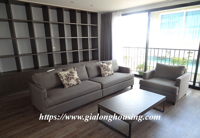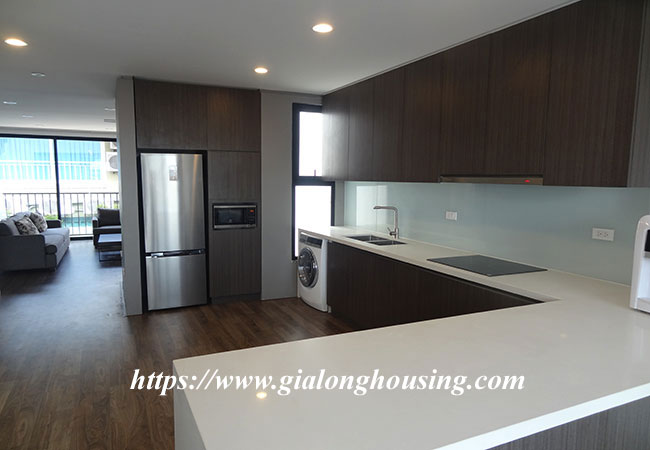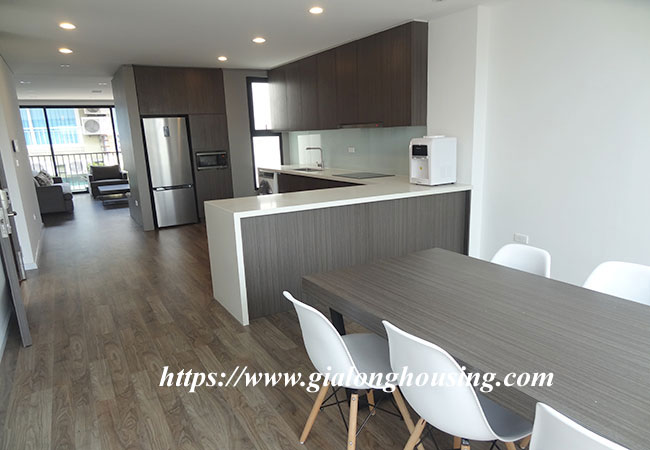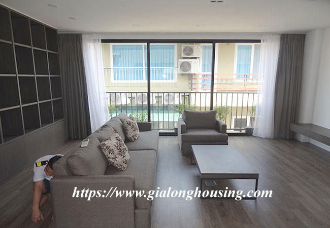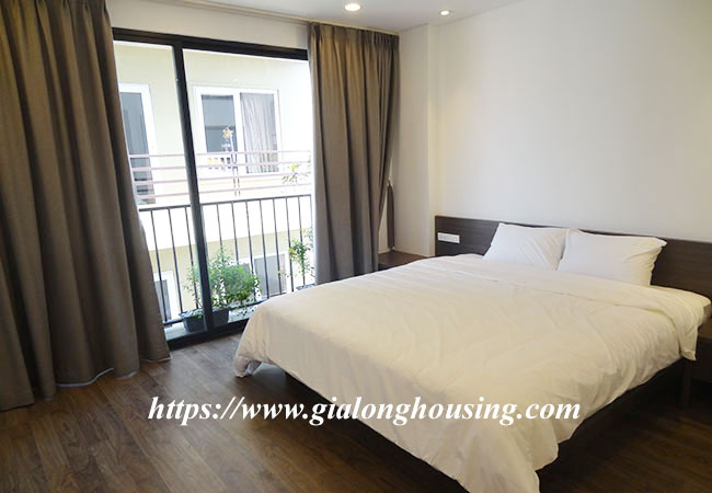 This brand new serviced apartment is located in 6th and 7th floor of very new building. The total living area is 180 sq m. There are 03 bedrooms in the apartment so that the tenants can be a family or a group of friends. In any bedroom, it has own bathroom. The apartment is fully furnished so that the tenants can move in and stay in long term.