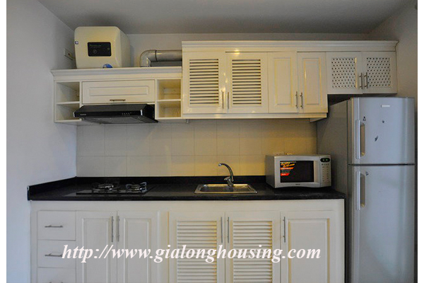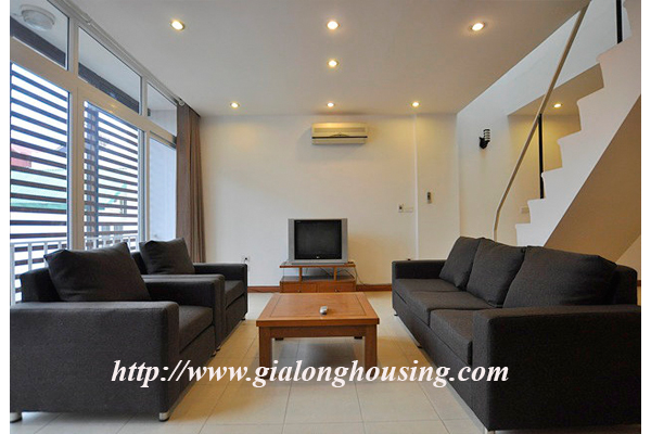 Located in Linh Lang street, you just spend some minutes walking to Japanese Embassy, Lotte shopping center and hotel, Daewoo hotel, supermarket, coffee shops, restaurants. The total area of this duplex is about 130 sq m with 02 floors. The first floor is living room, kitchen and dining area. The second floor is 02 bedrooms and bathrooms, suitable for you to stay in couple or family. The furniture is good and high quality.