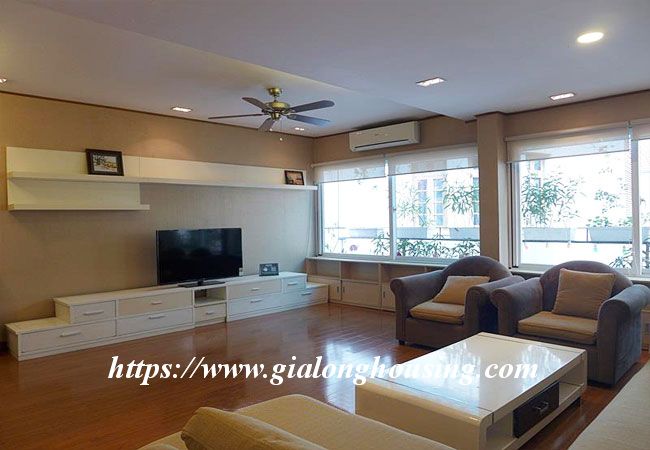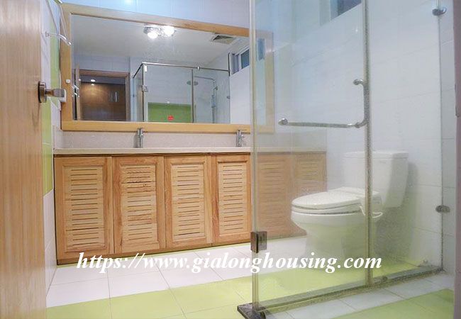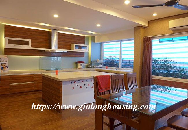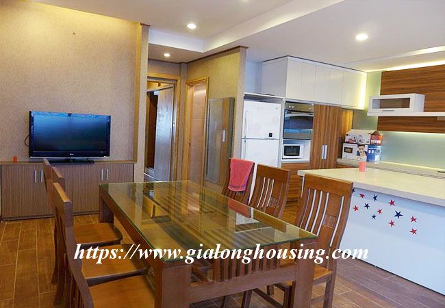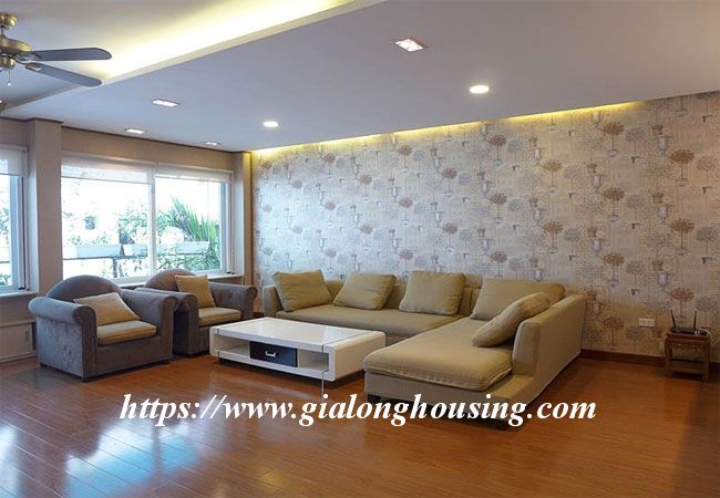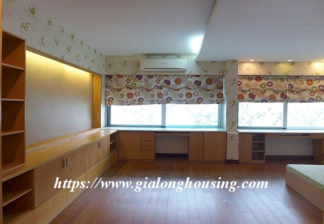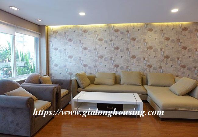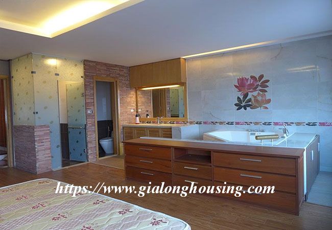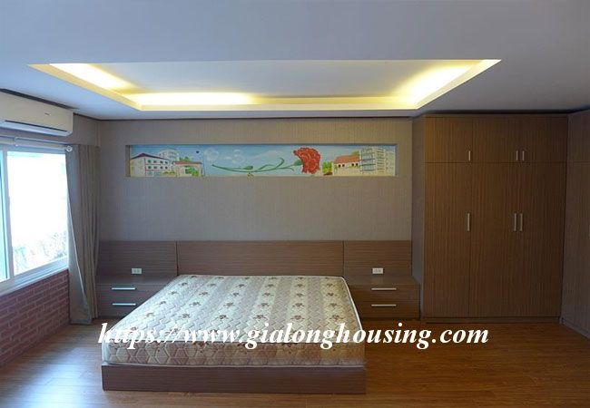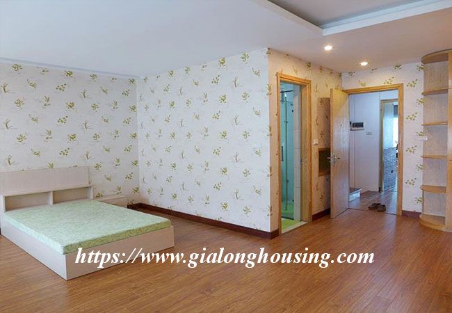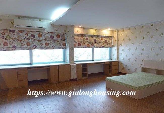 This duplex apartment is located in the highest floor of the serviced building. It is in To Ngoc Van street, Tay Ho district. The whole apartment is full of sunlight and fresh air. The total area is 200 sq m (including 02 floors). There are 02 bedrooms and 02 bathrooms, suitable for long term contract.