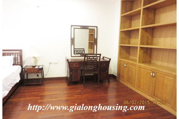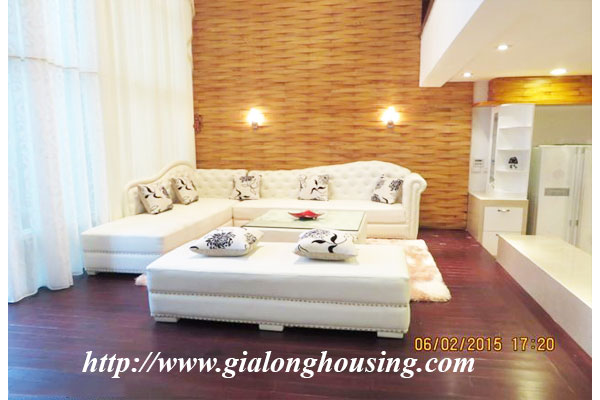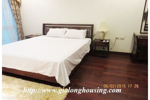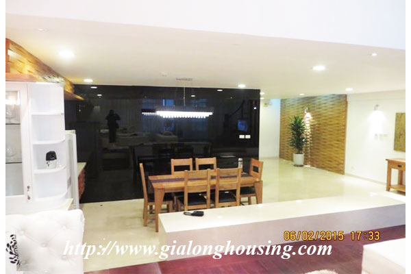 This duplex is very spacious with the total area is 280 sq m, 05 bedrooms and 04 bathrooms, suitable for both Vietnamese and foreign people. All the rooms are nice with full high quality furniture and good decoration. From balcony, you will have a paranormal view of Ciputra