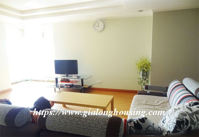 This nice apartment is located in high floor of E1 Building, one of the first buildings of Ciputra urban area. It is not far from Ciputra main gate in Nguyen Hoang Ton and close to Thang Long bridge. The apartment is full of sunlight and fresh air in 123 sq m. There are 03 bedrooms and 02 bathrooms, suitable for long term contract. The apartment is fully furnished.