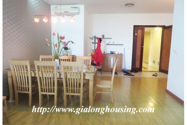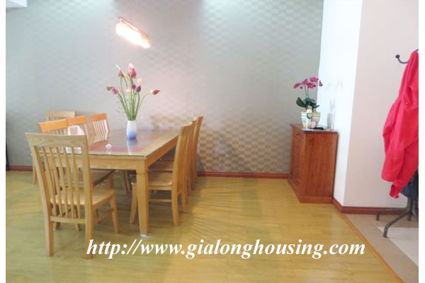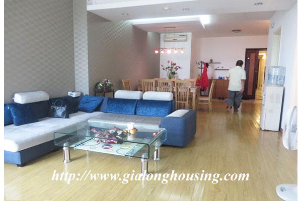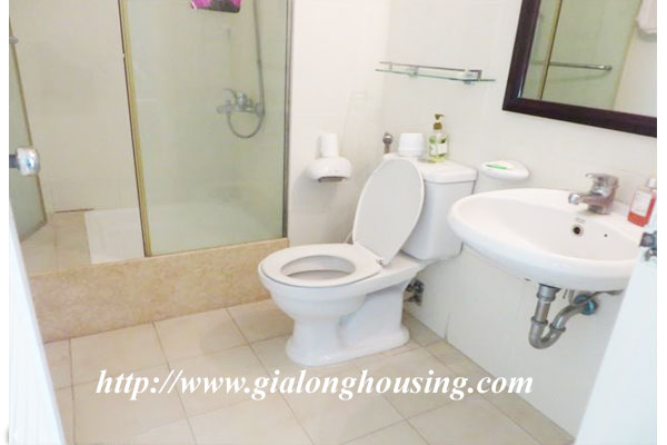 The total area of this apartment is 123 sq m with 03 bedrooms and 02 bathrooms. The whole apartment are very bright and nice with modern furniture and high quality equipment. The apartment is located in high floor where you can enjoy the beautiful view and prevents the noise.