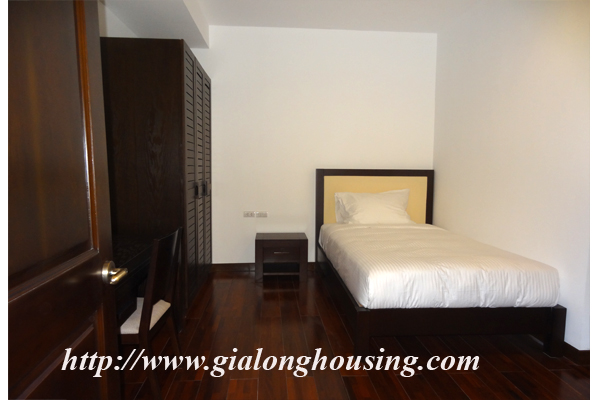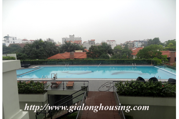 Located in high floor of Elegant Suites building, this apartment is the best choice for you to stay. The total area is 161 sq m, with 03 bedrooms and 03 bathrooms. From all window and balcony, you will have a very good view to city and West lake. The building is full of high quality services, such as swimming pool, gym, security.