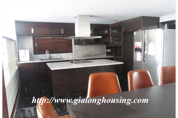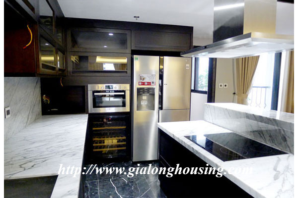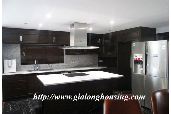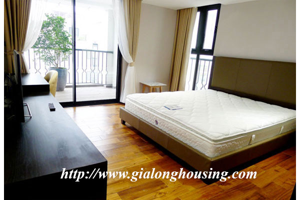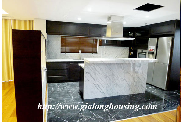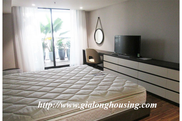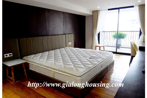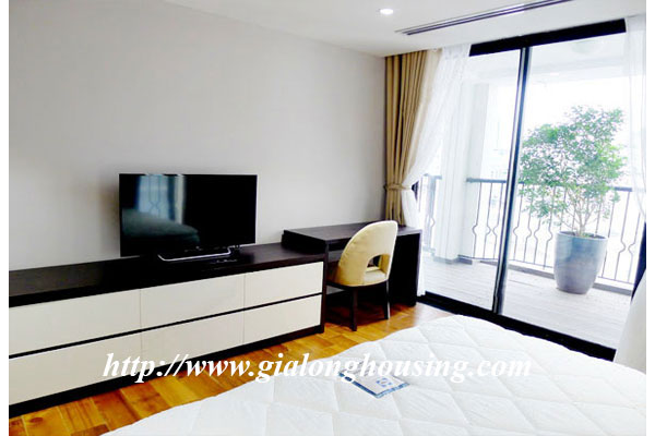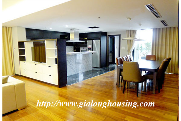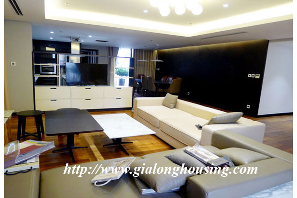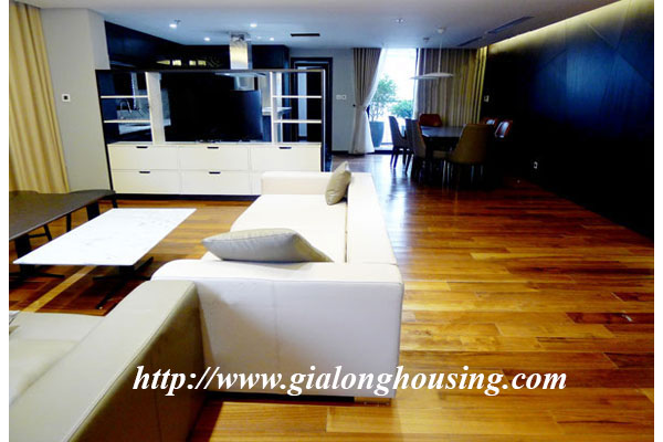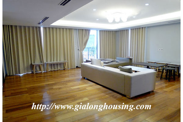 This is a large apartment located in Hanoi city center. The total area is 250 sq m with 03 bedrooms and 03 bathrooms. The decoration is nice and modern, suitable for all your demand for a comfortable and sweet home. The whole apartment is bright with lot of natural light from big glass windows and balcony. All furniture are new and carefully set up.