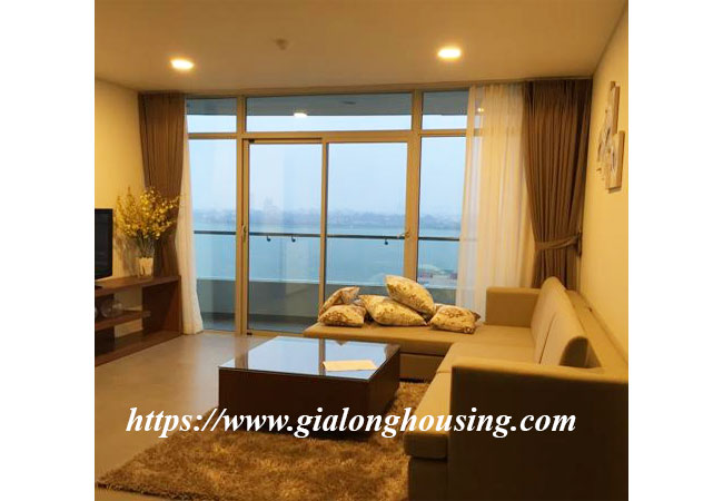 The total area of this nice apartment is 107.5m2, Watermark Hotay luxury residence, 395 Lac Long Quan Hanoi. The apartment has Water front 2 bedrooms and 1 living room that give you a panoramic view of the West Lake. 2 baths with bathtub and tower. Functioning modern kitchen with dishwasher, refrigerator, washing-drying machine will help your daily chores... The building has gym, swimming pool, car parking for resident only. Restaurant, bar, coffee shops are available on ground floor.