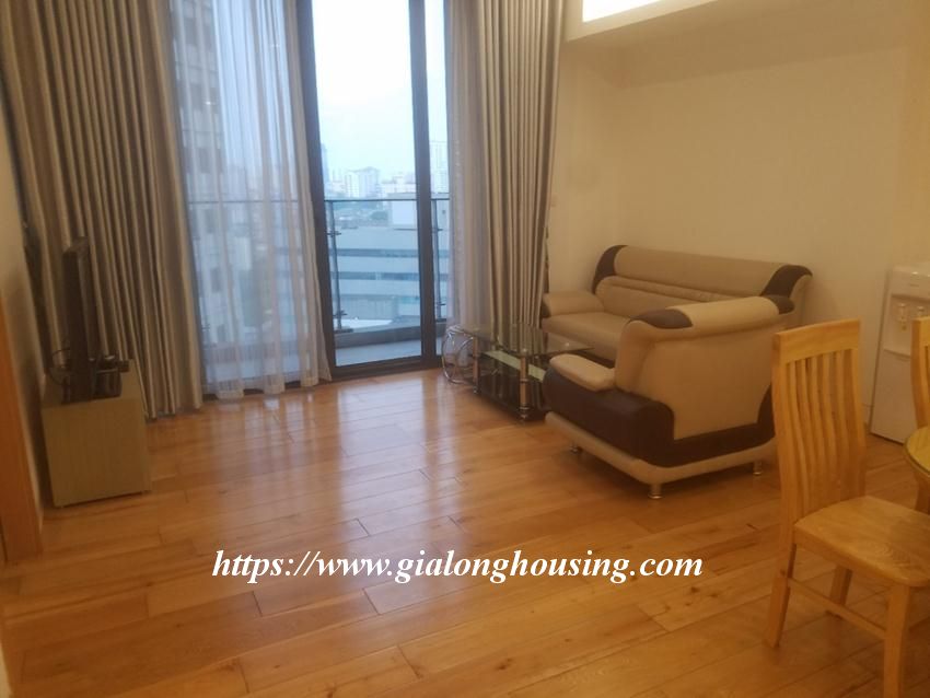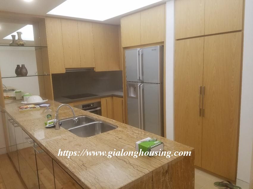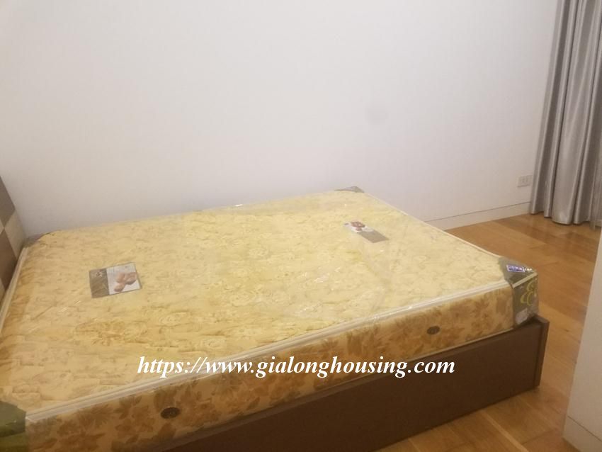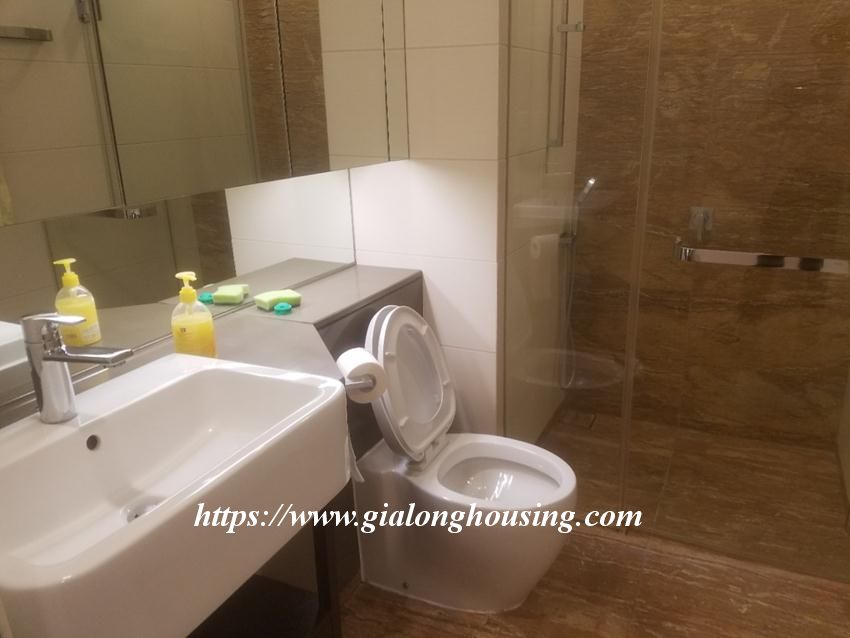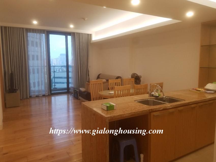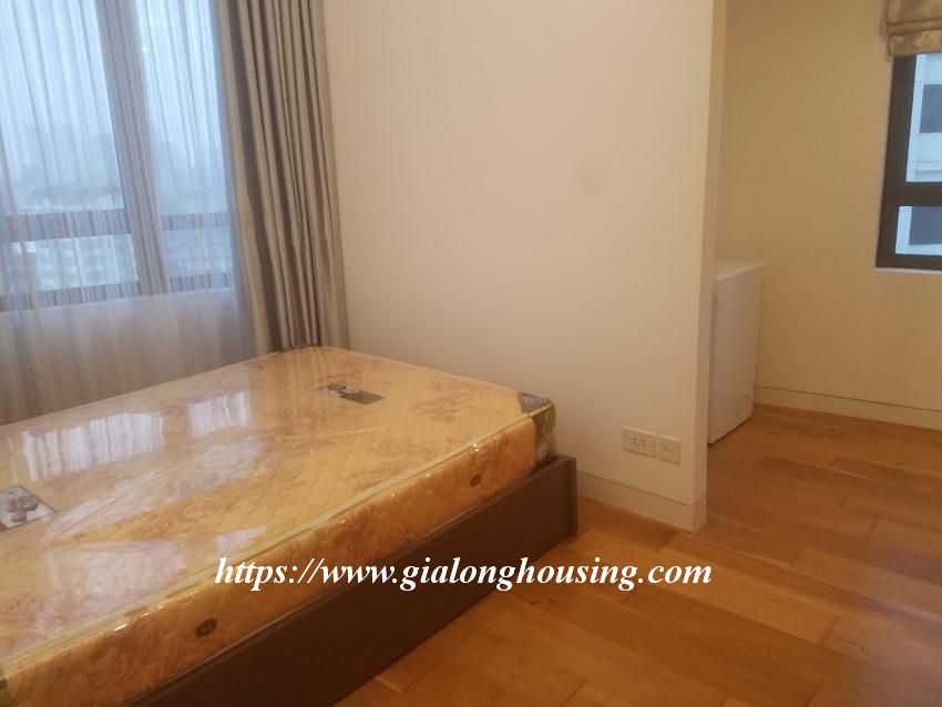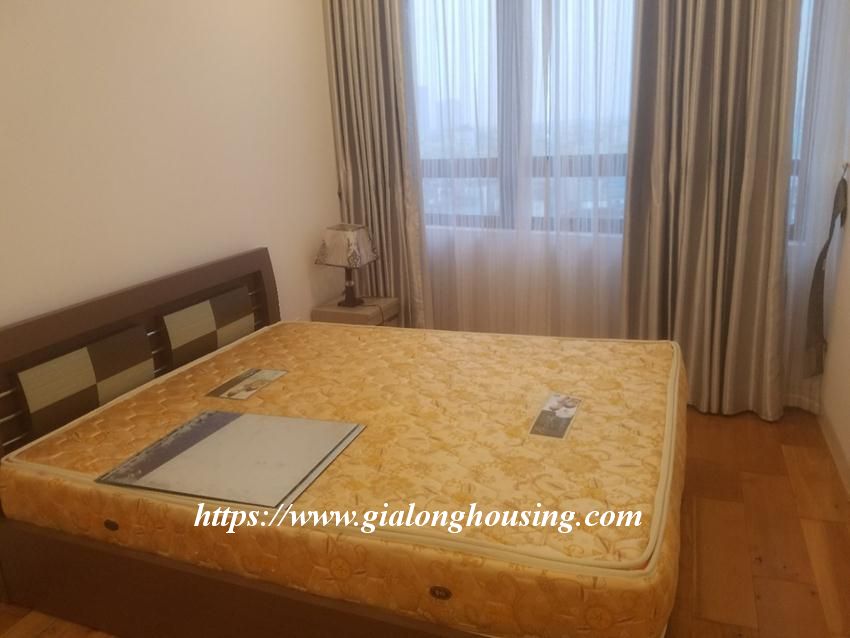 The total area is 110 sq m, 03 bedrooms and 02 bathrooms. The living room and the kitchen are combined. The apartment is fully furnished and ready for you to move in. The view from the balcony is a corner of Hanoi city. The building has cinema, shopping center, pool and fitness center.