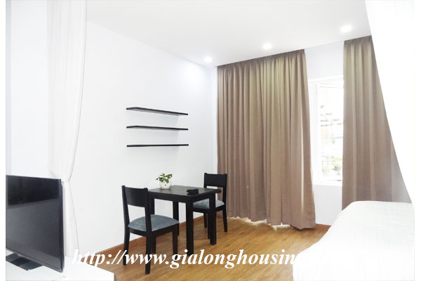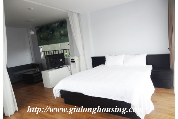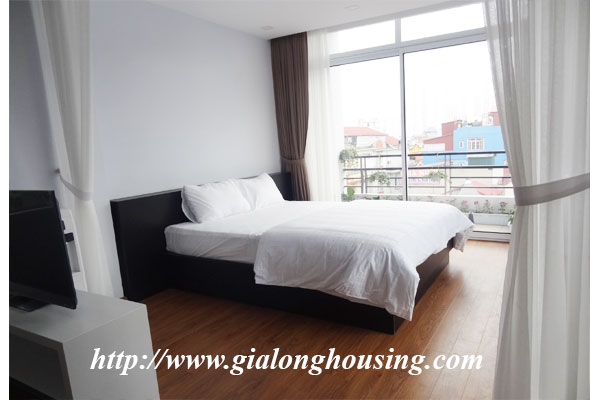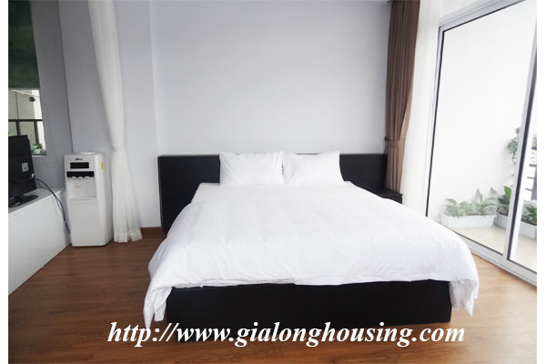This is a brand new building for rent in Trung Kinh area, Cau Giay district. All services such as laundry, security, cleaning 06 times/week, high speed internet, cable TV are included in the rent. The total area of the apartment is 60 sq m with 01 bedroom and 01 bathroom. The whole apartment is bright and nice with modern furniture.