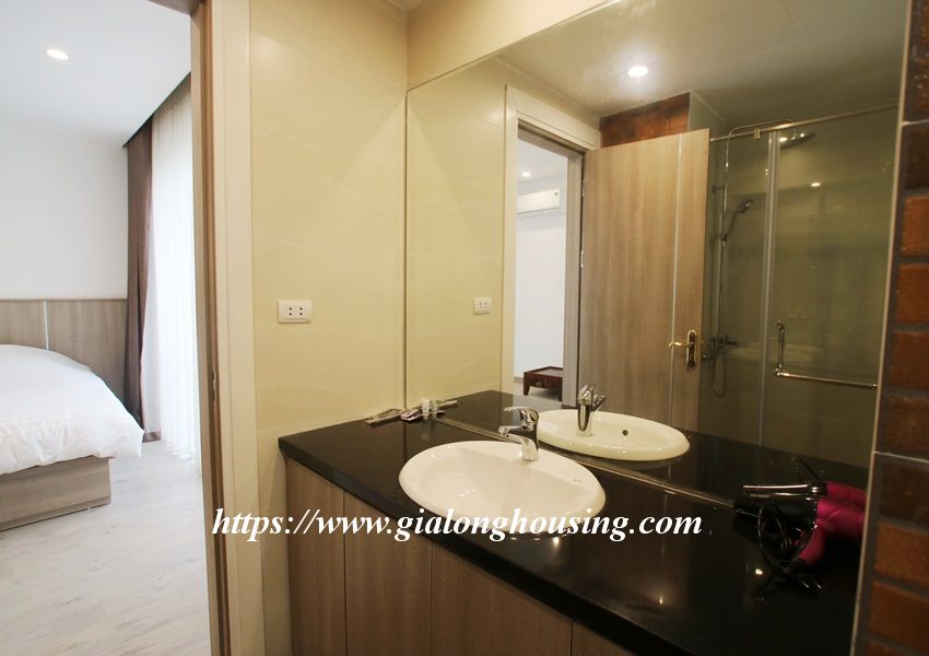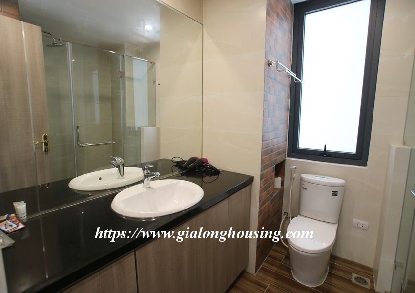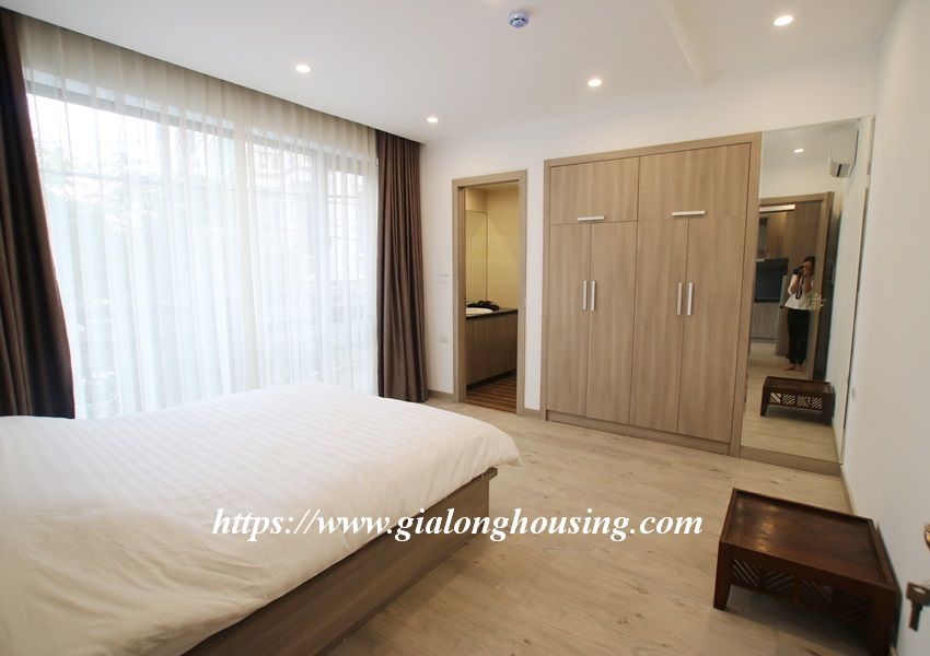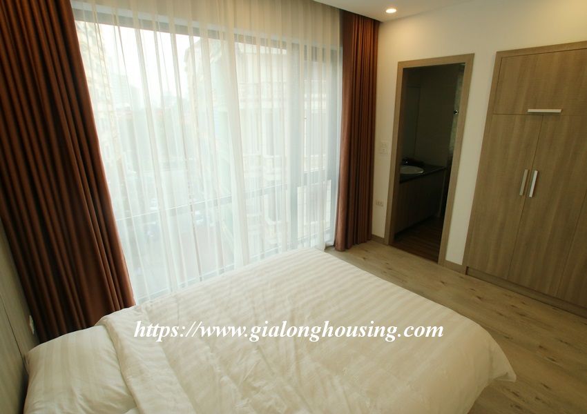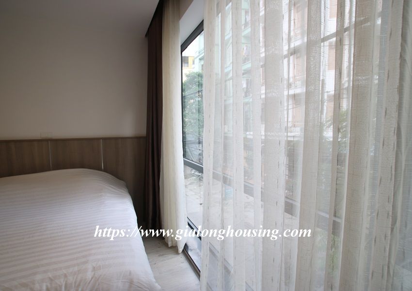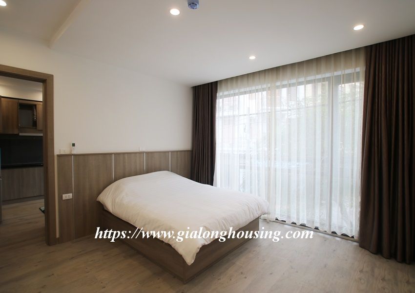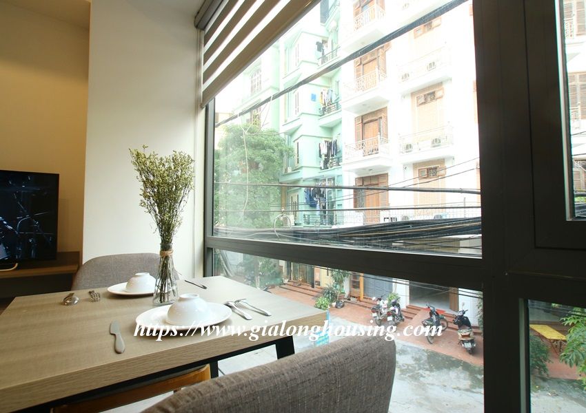 This is one fully furnished bedroom apartment for rent in Hoang Quoc Viet. It is very new with modern and beautiful furniture. All the rooms are bright with large glass windows. The total area is 55 sq m. The rent includes: high speed internet, tap water and cable TV.