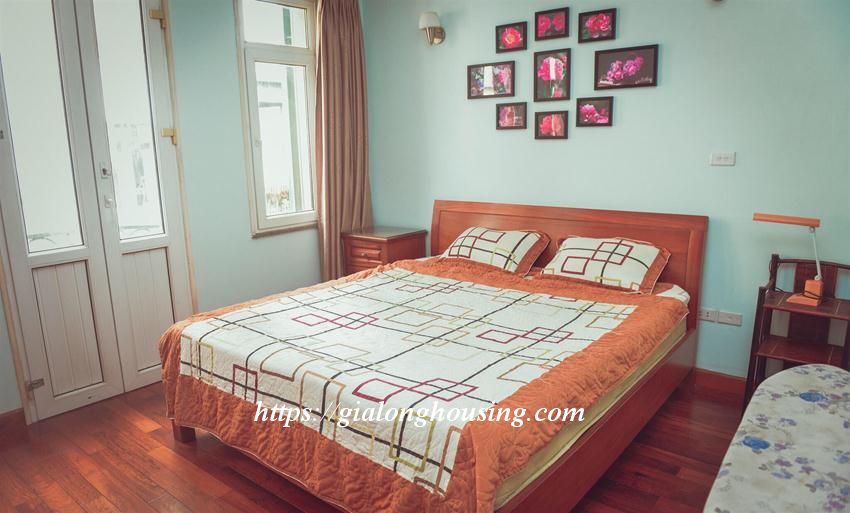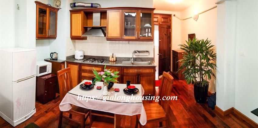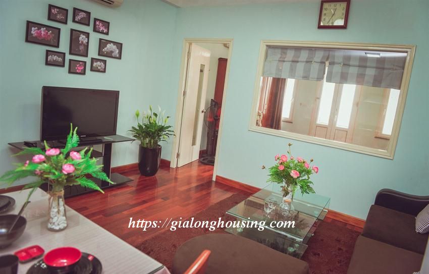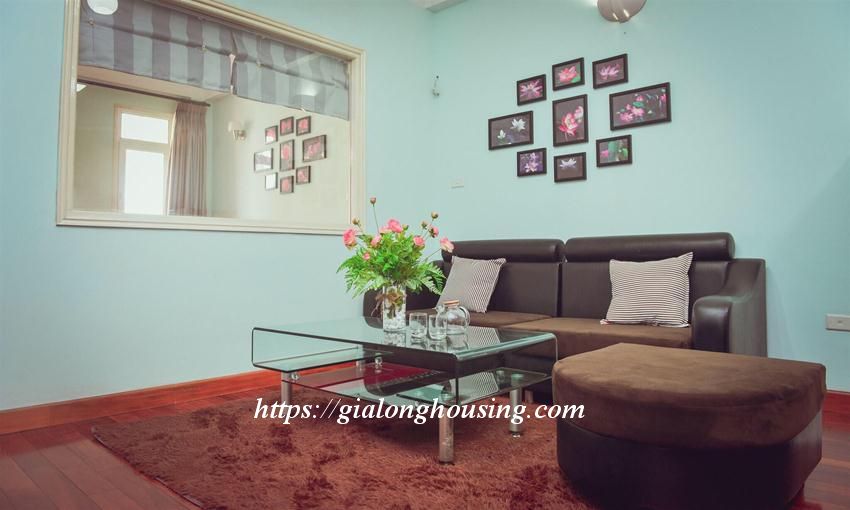 This fully furnished apartment is located in Cat Linh street, Dong Da district, Hanoi. The total area is 50 sq m, 01 bedroom and 01 bathroom. The living room and the kitchen is cozy with modern furniture and equipment. The rent includes : cable TV, wireless internet, tap water.