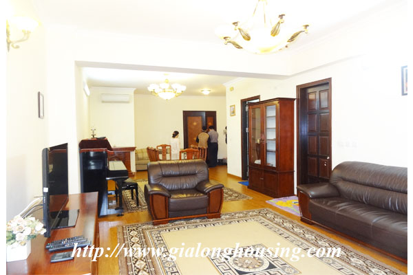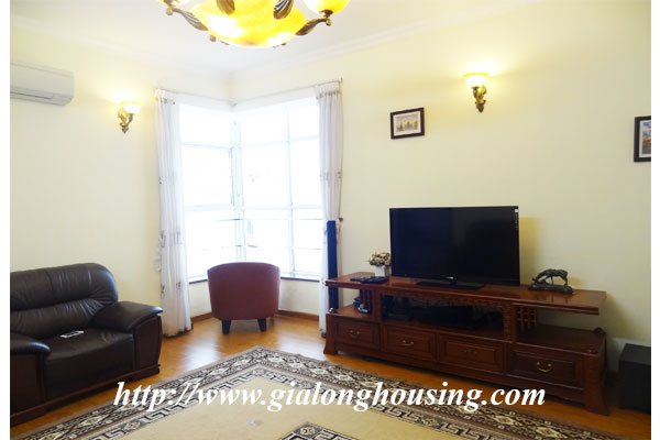 The total area of this apartment is 123 sq m with 03 bedrooms and 02 bathrooms, suitable for friends or family to stay in long time. The apartment is nice and lovely with modern and high quality furniture.