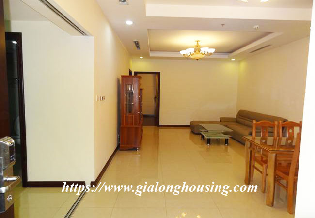 This apartment is located in the middle floor of the building. The total area is 105 sq m with 02 bedrooms and 02 bathrooms. The whole room is bright and nice with modern equipment and furniture. Royal City is one of the most modern and beautiful urban areas in Hanoi with the largest underground shopping center, swimming pool, cinemas, restaurants.