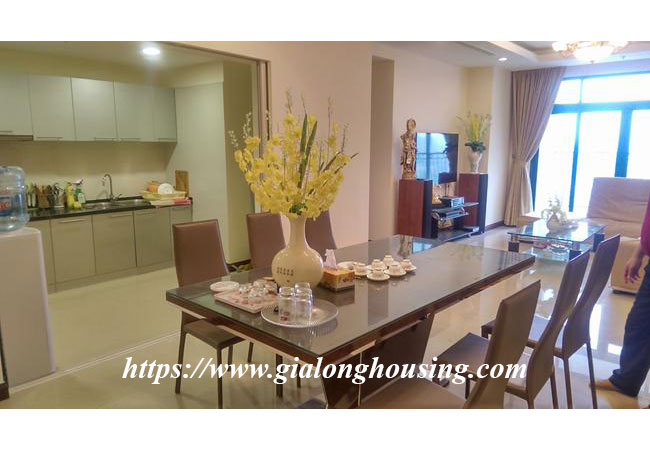 This apartment is set up high quality furniture and equipment for long time using. The whole apartment is bright and nice, full of natural light and fresh air. The total area is 132 sq m. There are 02 bedrooms and 01 multifunction- room that can be changed into a study or an extra bedroom. The tenants will enjoy all professional services: four season swimming pool, underground shopping center, international school.