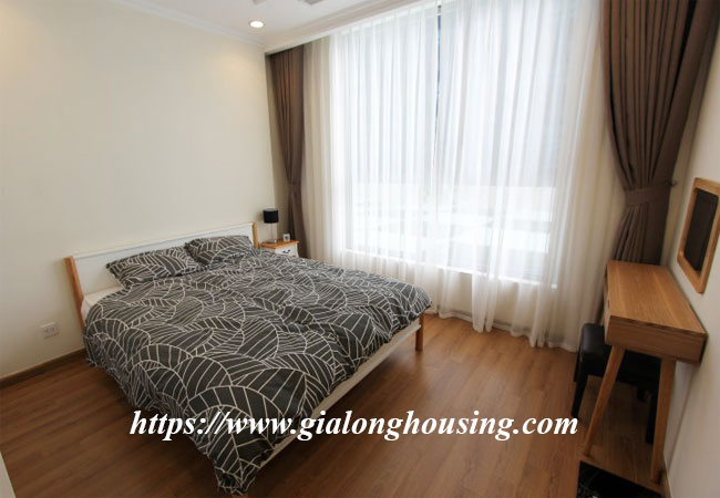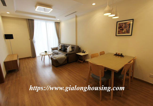 This apartment is located in high floor of Vinhomes Nguyen Chi Thanh building. From the windows and balcony, you will have great view of the surrounding area and the most beautiful road of Hanoi. The total area is 82 sq m, including 02 bedrooms and 02 bathrooms. The apartment is fully furnished.