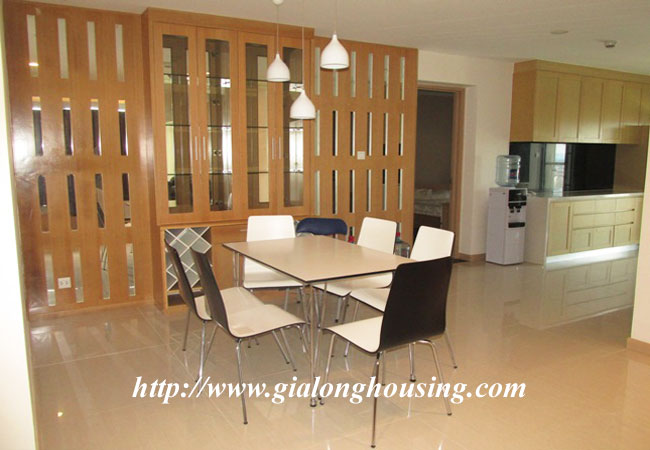The total area of this apartment is 161 sq m, 04 bedrooms and 03 bathrooms. The apartment is fully furnished and welcome all tenants to move in soon. The buildings have swimming pool, security, kindergarten. The residents can use all services here.