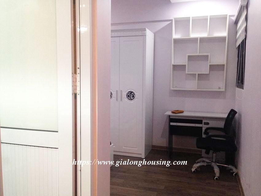 This fully furnished apartment is located in high floor of Green Stars, 234 Pham Van Dong street. The total area is 74 sq m, including 02 bedrooms and 02 bathrooms. The kitchen is next to the living room. The whole apartment is bright with big balcony and windows. The tenants can move in immediately.