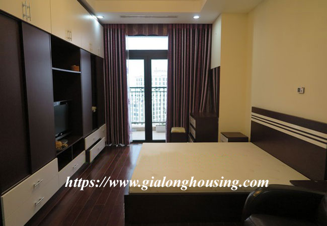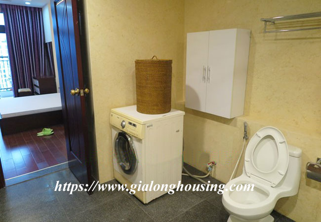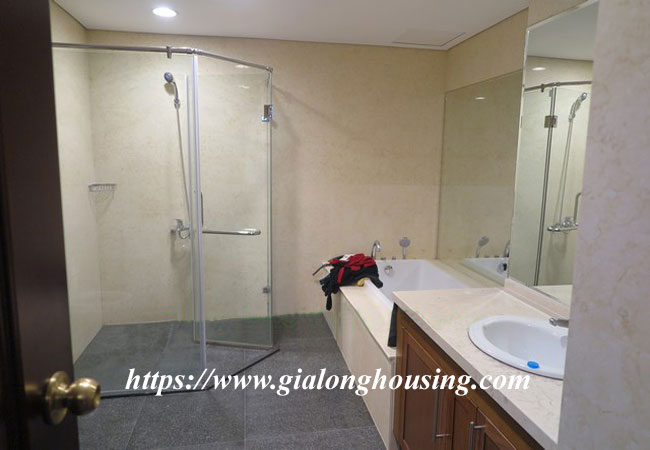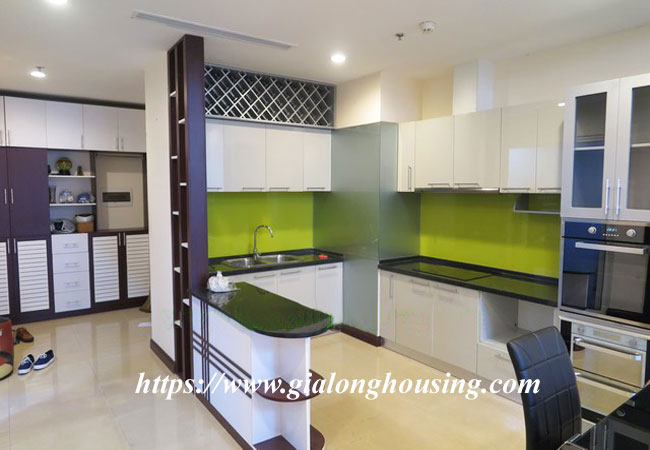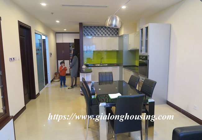 This 3 bedroom apartment is located in high floor with good view. The total area is 145 sq m. The living room and the kitchen is combined with the dining area. All furniture and equipment are modern and comfortable for tenants to use in long term. The building is in the complex of one of the most modern and beautiful urban areas in Hanoi. There are underground shopping center, cinema, water park, supermarket, restaurant, four - season pool.