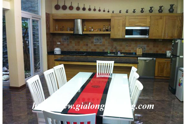 This is a fully furnished house that located in Ngoc Ha, near the lake and Botanical Garden. It is very close to both West lake and Hanoi city center. The surrounding is really safe and quiet. The house is quite large and suitable for a family or a group of friends to stay in long term. The house has 4 bedrooms and 05 bathrooms. The whole house is bright and nice with modern design.