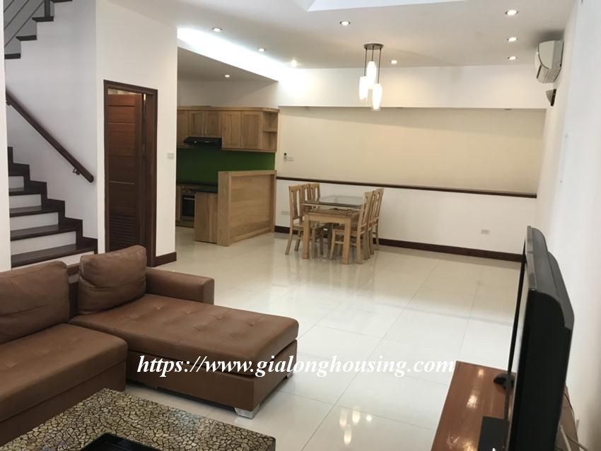 This fully furnished house is located in large lane of Tay Ho district. The total land area 80 sq m, including 04 floors. The house has 04 bedrooms and 05 bathrooms. The house has basic furniture, kitchen cabinet and wooden floor. Please contact us to visit the house.