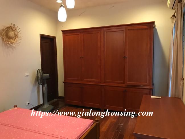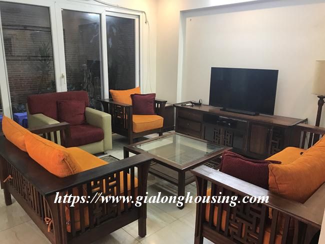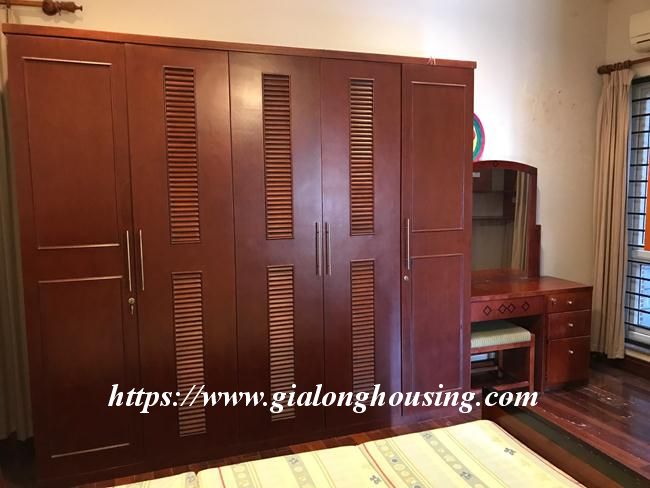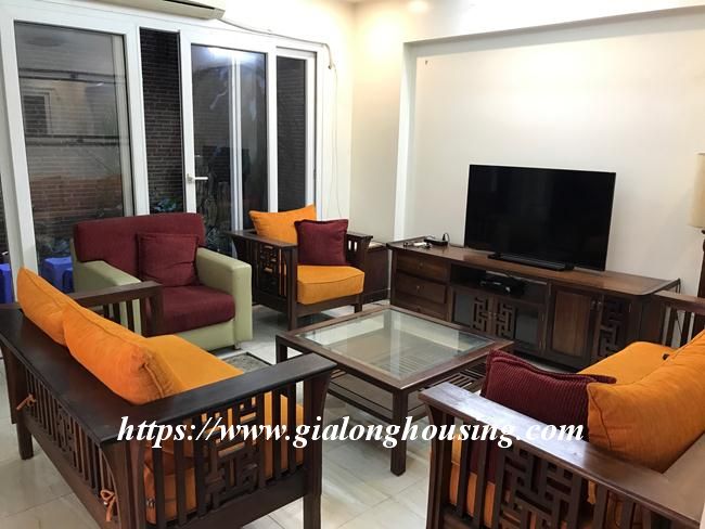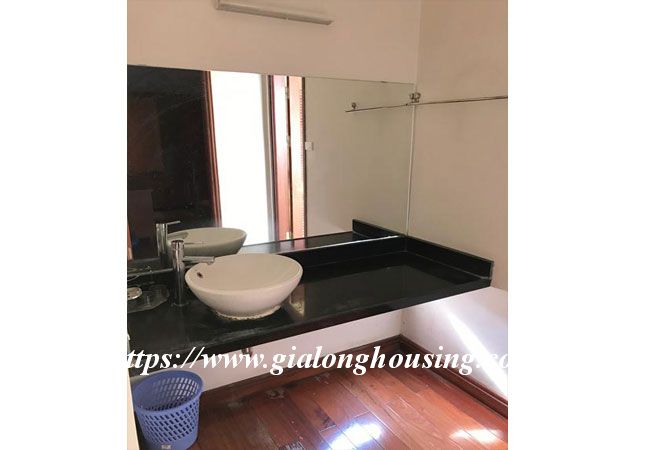 This fully furnished house is located in Thuy Khue street, not far from West lake and Trich Sai street. The total area is 70 sq m, including 03 bedrooms and 04 bathrooms/toilets. The house is fully furnished and the tenants can move in immediately. The house has a small yard where you can park your bikes.