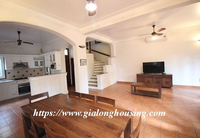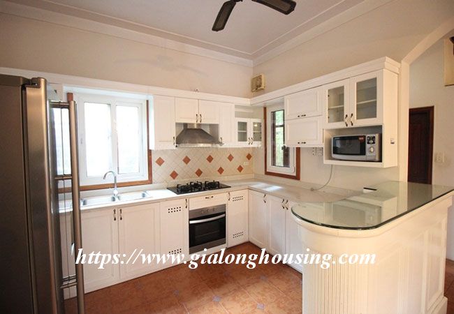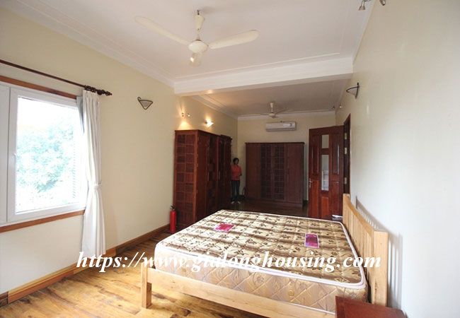 This beautiful house is located in lane 67 To Ngoc Van street, Tay Ho district. The land area is 220 sq m, with a large surrounding garden. The construction area is 140 sq m x 4 floors. All the rooms have sunlight and fresh air from windows and balconies. The house welcomes all the long term contract.