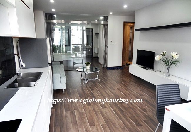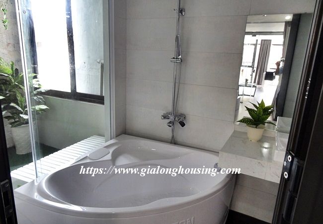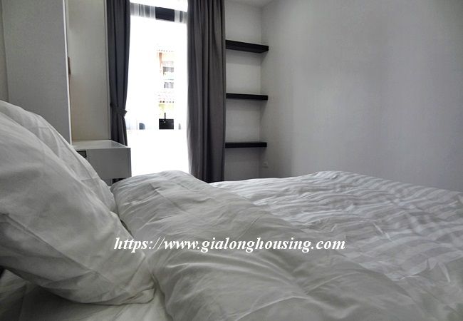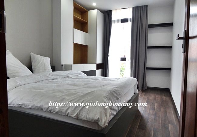 This brand new serviced apartment is located in lane 31 Xuan Dieu, a few minutes walking to Westlake, Syrena shopping center, Sheraton hotel. The total area is 85 sq m, including 02 bedrooms and 02 bathrooms. The apartment is modern and western style. Please contact us to visit the apartment today.