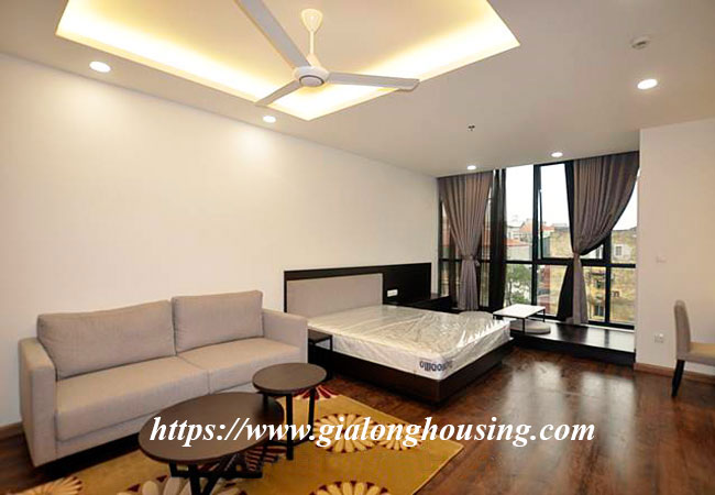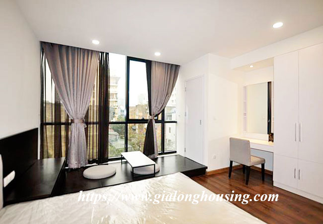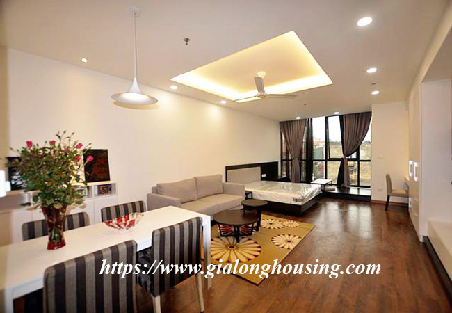 This is a fully furnished studio located in high floor of Lancaster building, 20 Nui Truc street, Ba Dinh district. With the total area is 50 sq m, this will be the ideal home for one person or a couple. The whole apartment is carefully decorated, suitable for the tenants to move in immediately and stay in long term. The building has swimming pool, security, public library.