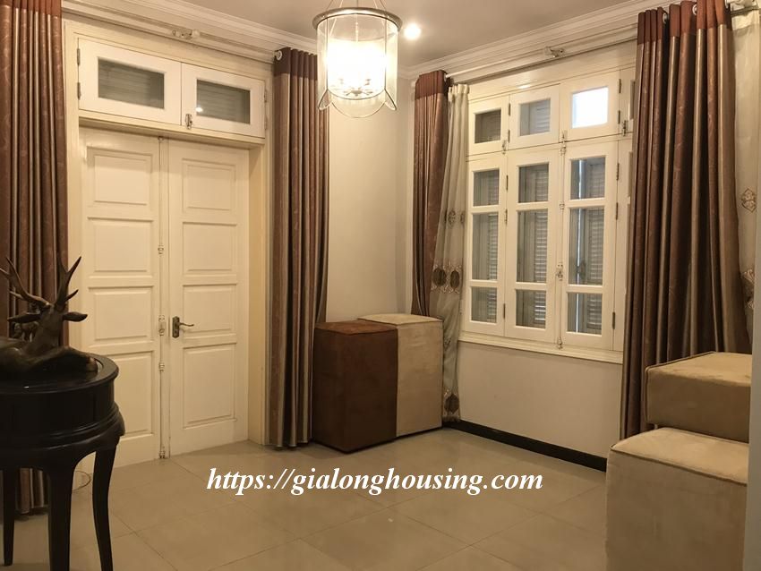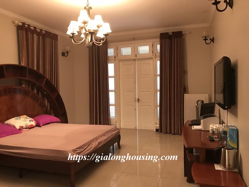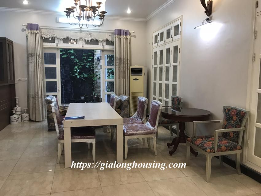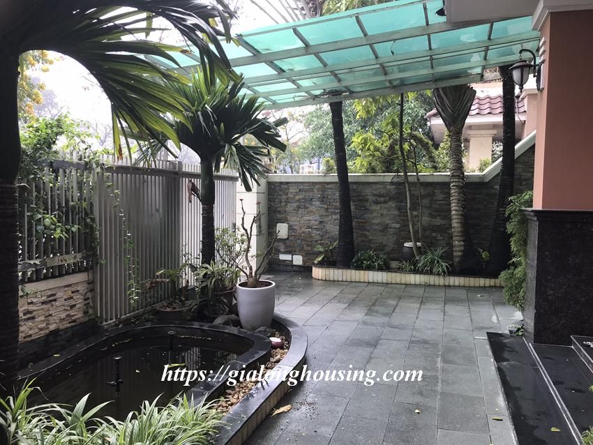 This fully furnished villa is located in T block, Ciputra urban area. The land area is 230 sq m, 3 floors. The villa is ready for the tenants to move in. There are 04 bedrooms and 03 bathrooms, suitable for a big family or a group of friends to stay in long term. The villa is surrounded by flowers and green trees.