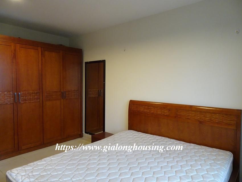 This nice and bright apartment is located in G02 building, Ciputra urban area. The total area 123 sq m, including 03 bedrooms and 02 bathrooms. The whole apartment is bright and cozy with full of equipment. The building has swimming pool, gym,reception and security 24/24. Please contact us to visit it.
