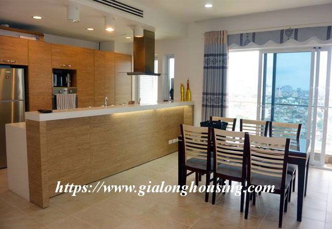 This apartment is located in the middle for of Golden West lake - The complex building located in the middle of Hoang Hoa Tham and Thuy Khue. The total area is 117 sq m. From the windows and balcony, there is a great view of city. The apartment is fully furnished and the tenants can move in immediately. The building has huge outdoor swimming pool and gym.
