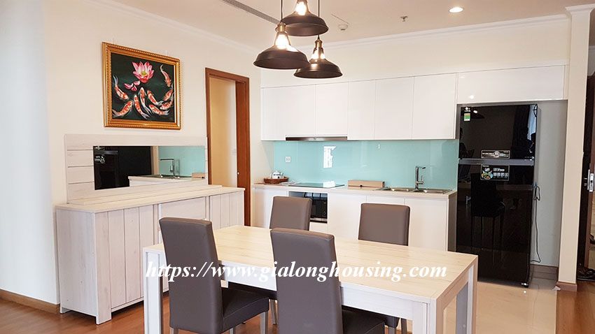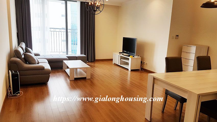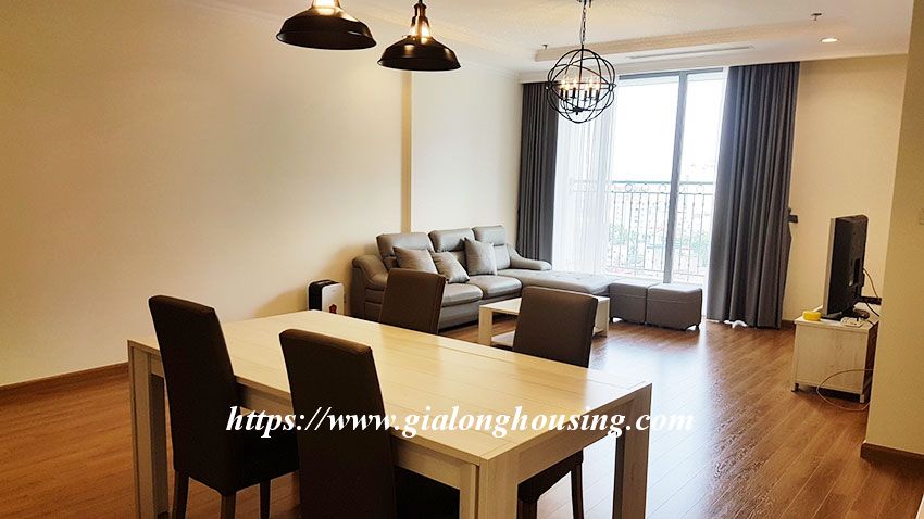 This gorgeous apartment is located in high floor of Vinhomes Nguyen Chi Thanh, one of the most modern and new building belong to Vingroup. The building has shopping center, cinema, supermarket and coffee shops. The apartment isze is 128 sq m, including 03 bedrooms and 02 bathrooms. The whole apartment luxuriates into the fresh air and natural light.