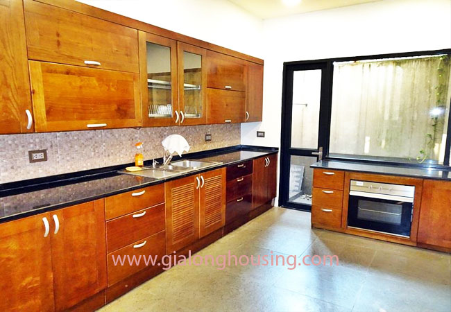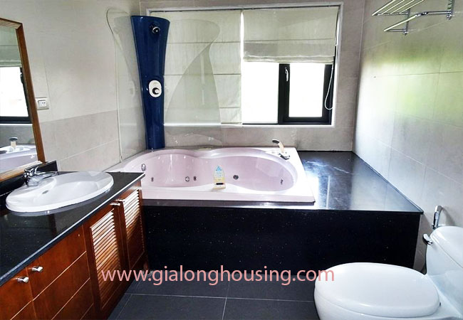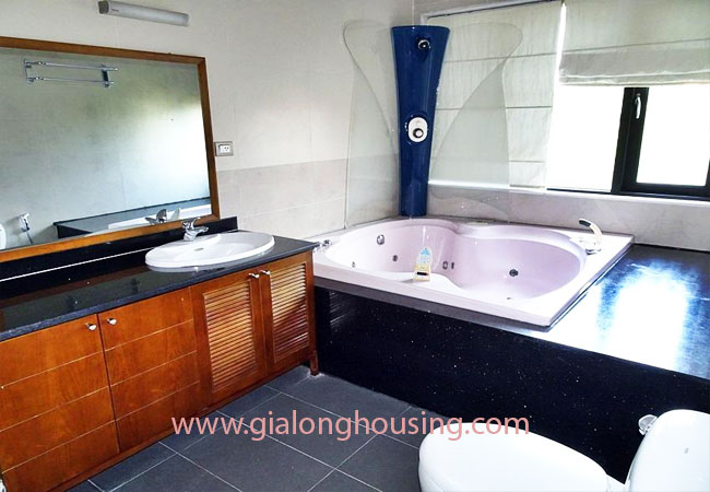 This large house with court yard for rent in Vuon dao urban, Tay Ho district! It comes with a large lawn part which is rare in Hanoi! IThis House with large yard to lease worths a visit you will be charmed by its authenticity. Its garden reaches a size of 220 sq m, with a lot of trees, constrution 4 floor with 5 bedrooms and 5 bathrooms. The house is detached, thus offers a maximum of natural light and breeze thanks to its windows on every direction!