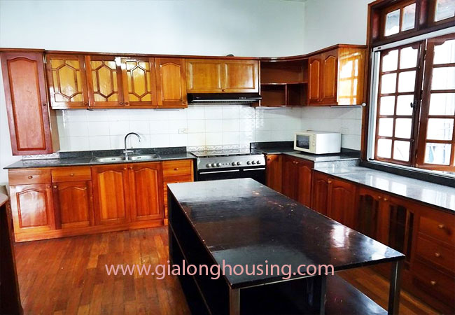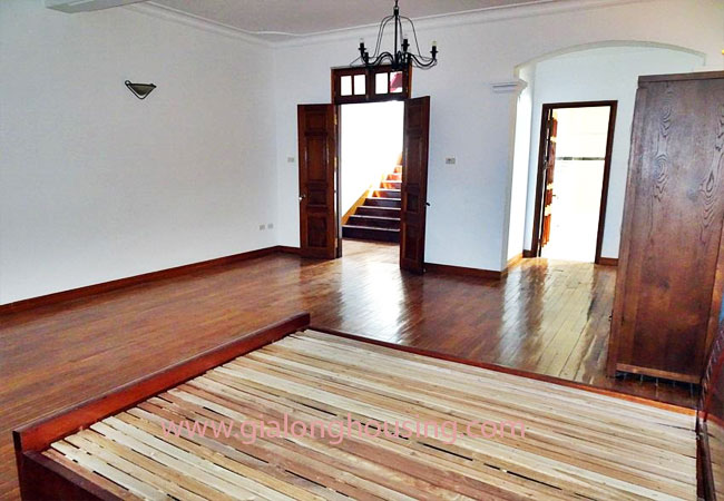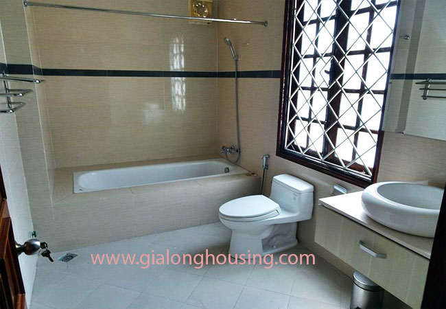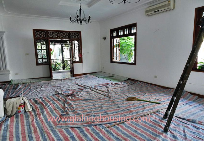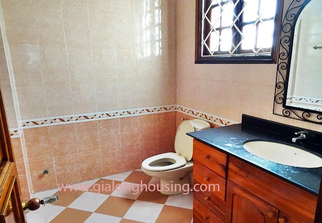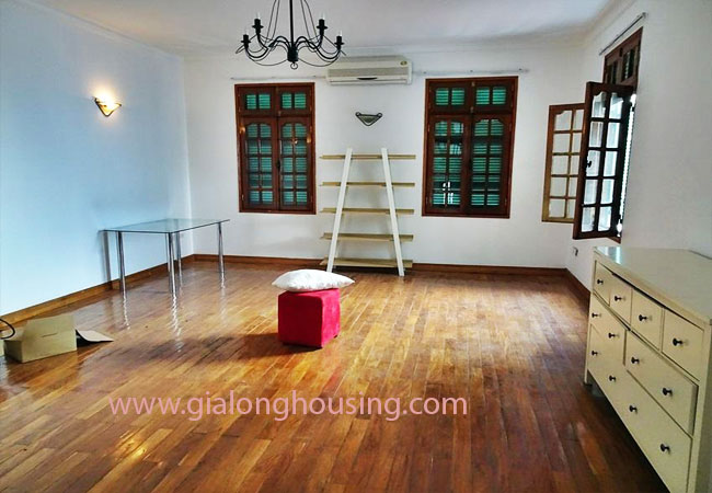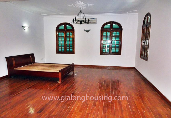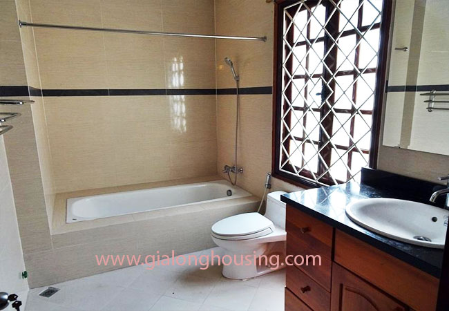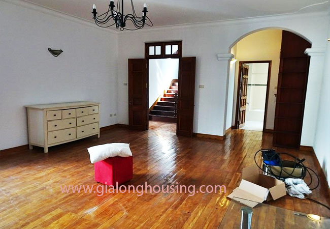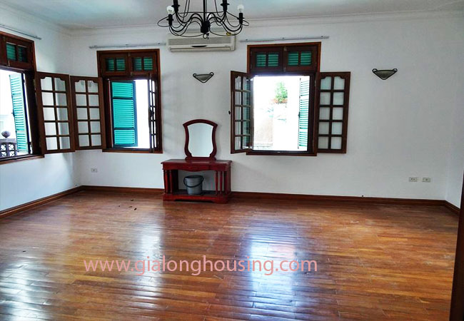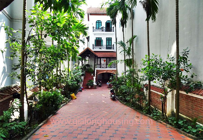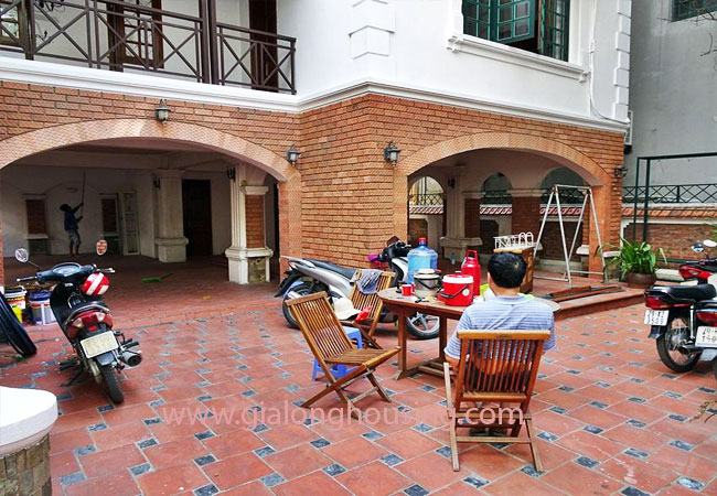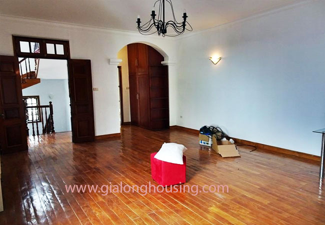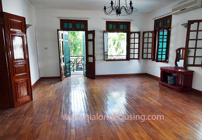 This large villa with garden for rent in To Ngoc van street, Tay Ho district! It comes with a large lawn part which is rare in Hanoi! Inspired from the French colonial Era, you will be charmed by its authenticity. Its garden reaches a size of 440 sq m, with a lot of trees,construction 150m2 4 floor. The house is detached, thus offers a maximum of natural light and breeze thanks to its windows on every direction!