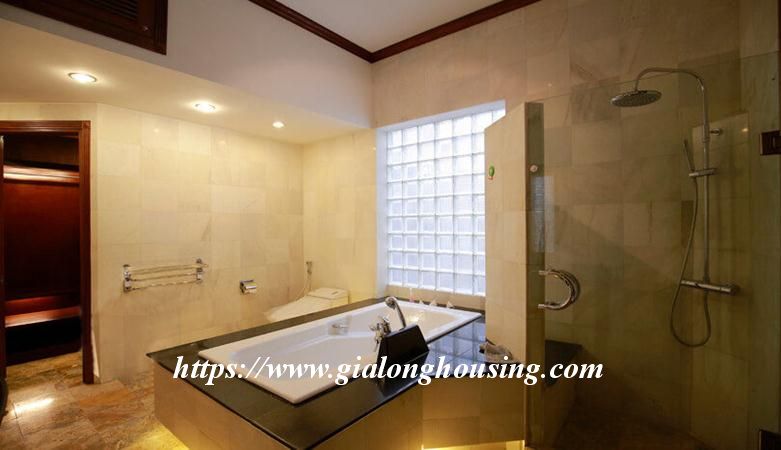 This beautiful villa is located in a large lane of Ton Duc Thang street, not far from Temple of Literature. The location is very convenient for car access and go to both city center or suburban area. The total living area is up to 300 sq m x 3,5 floors. The whole house luxuriates into sunlight and fresh air due to contemporary design.