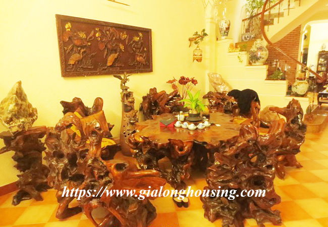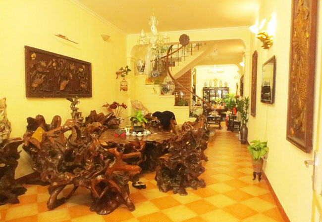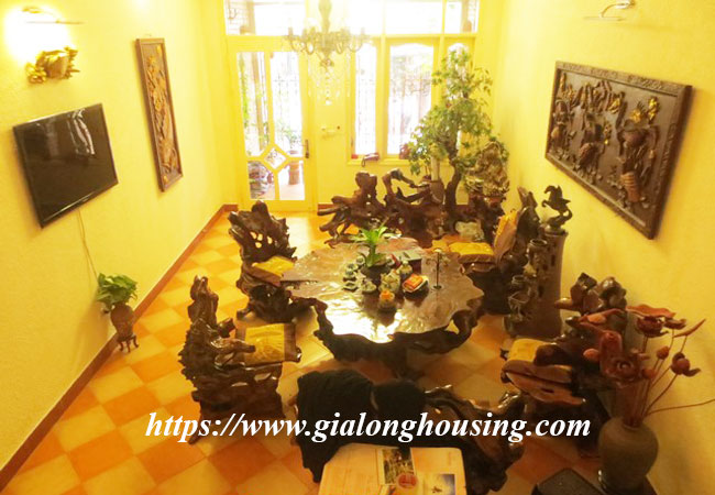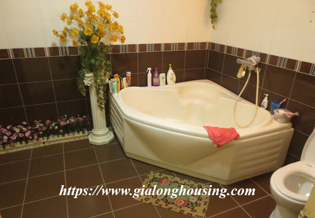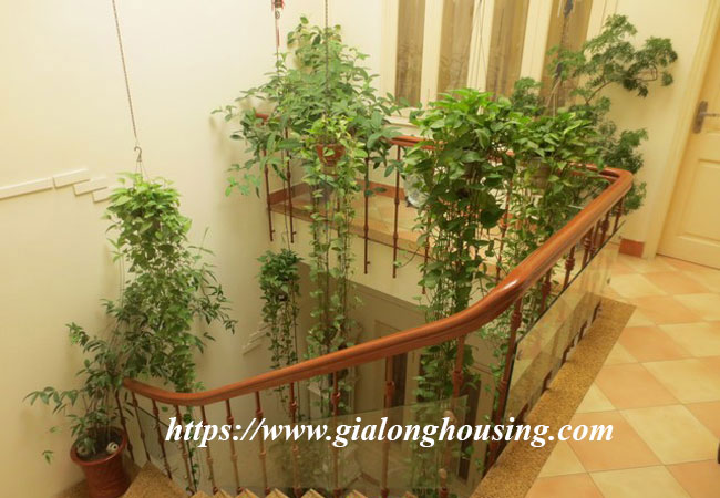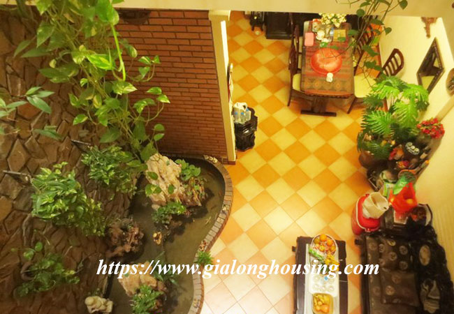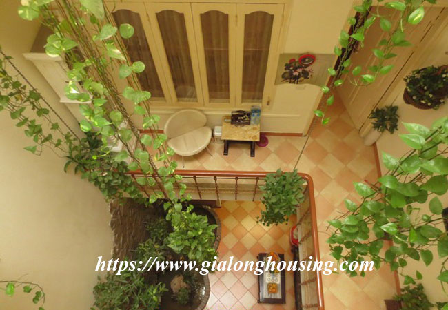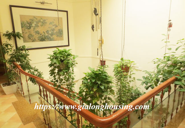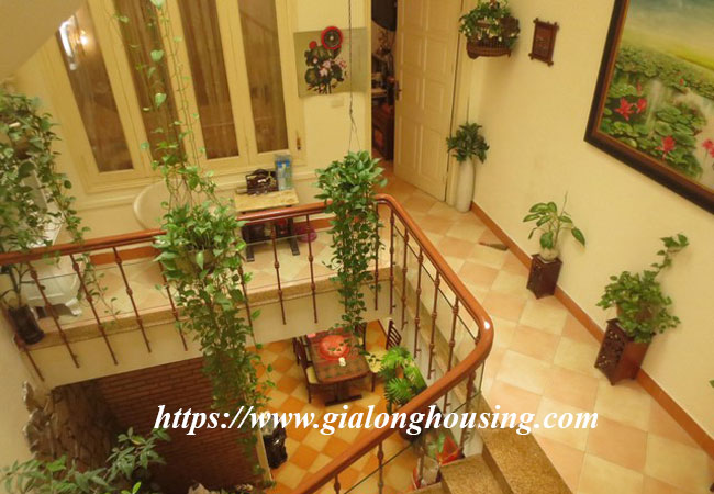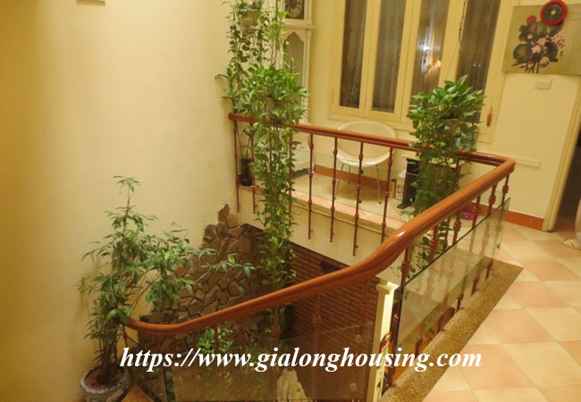 There is a three storied-house rental in Hoan Kiem dist, Ha Noi. This is a modern house with many green trees inside. It is designed-well with 3 bedrooms & 3 bathroom inside, wooden floor, beautiful balconies, a separated nice kitchen, a lovely living room with a special tea table and chairs in first floor. The first floor also has a nice goldfish tank. The house has a nice terrace with many green trees, you can put a table & chairs here to enjoy an interesting book, a cup of coffee or a cup of beer. The location in a beautiful lane, direct car access, good security, neighbors are friendly. It is very close to supermarket, shops, restaurants. The house is suitable for a family.