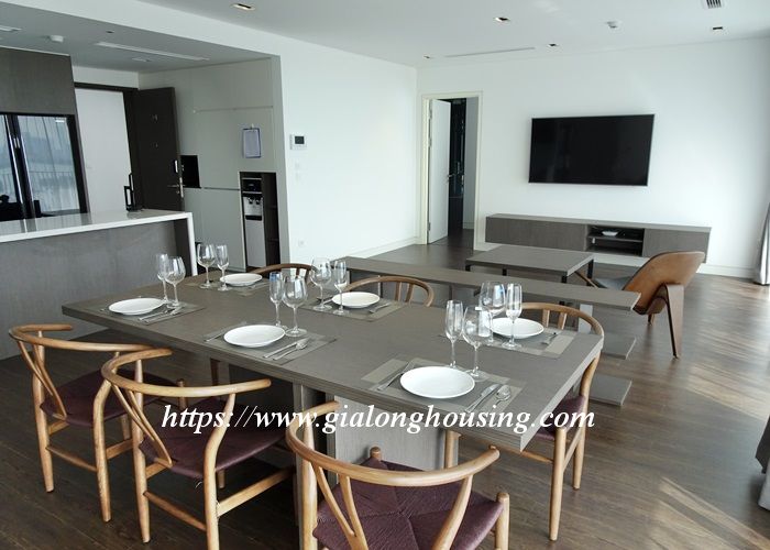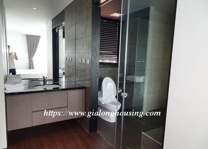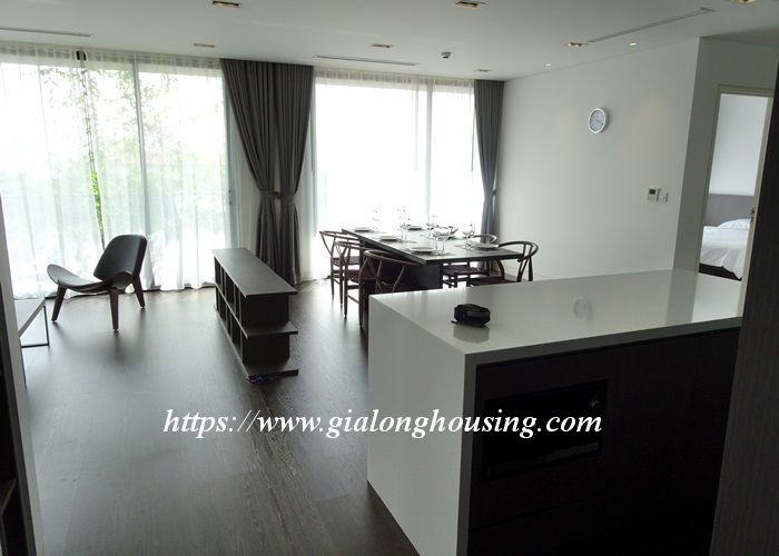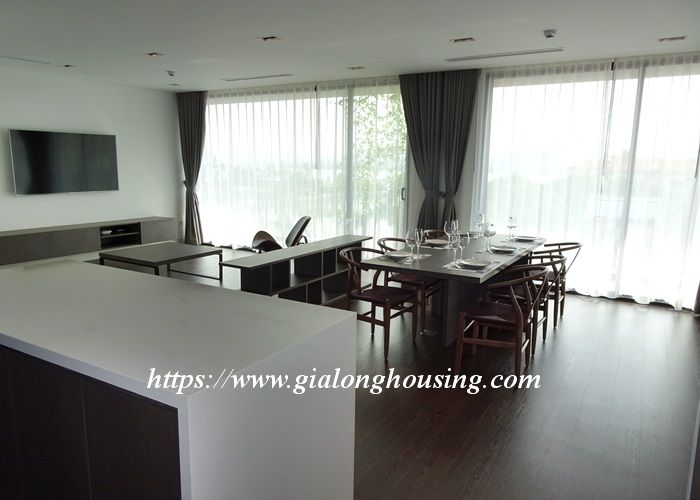 This high class apartment is located in high floor with open view, To Ngoc Van street, 7 minutes to West lake, 5 minutes to Xuan Dieu street. The total area is 200 sqm, 03 bedrooms and 02 bathrooms. The whole apartment is full of sunlight and fresh air with huge balcony from the living room to bedroom. The rent includes: cable TV, wireless Internet, tap water, cleaning service.
