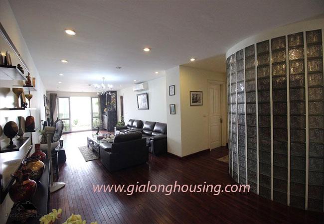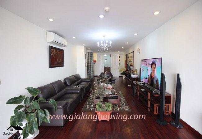 This 3 bedroom apartment is located in high floor of P building, Ciputra urban area. The total area is 145 sq m, including 03 bedrooms and 02 bathrooms. The apartment is bright and nice due to glass windows and balcony with beautiful floowers. The safe surroundings area and the high quality management service will satisfy you.