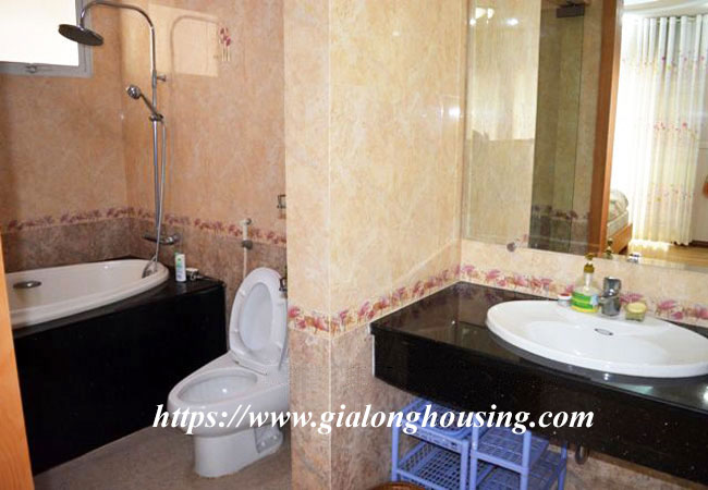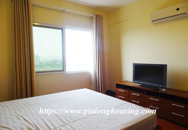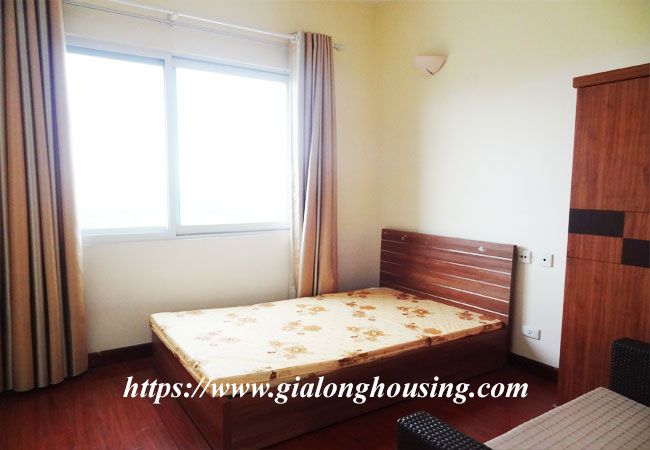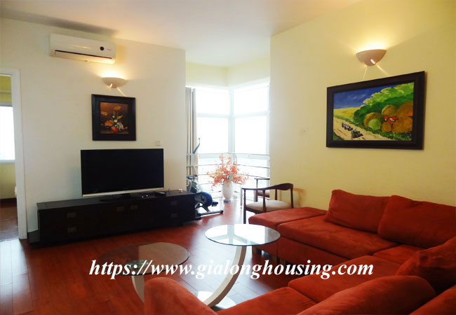 This 3 bedroom apartment is located in high floor of E4 building, Ciputra urban area. The total area is 123 sq m, including 03 bedrooms and 02 bathrooms. The apartment is bright and nice due to glass windows and balconies. The building is next to Hanoi Academy school in Ciputra urban area. The safe surroundings area and the high quality management service will satisfy you.