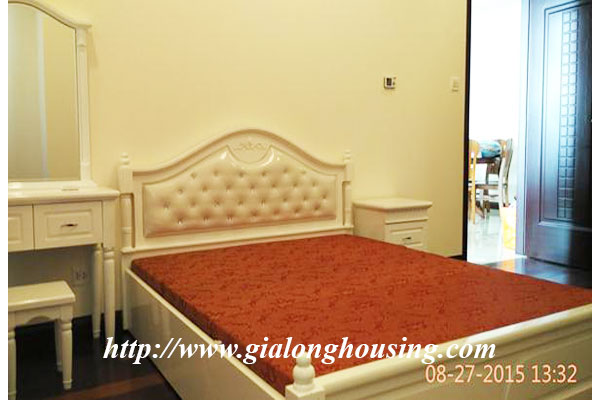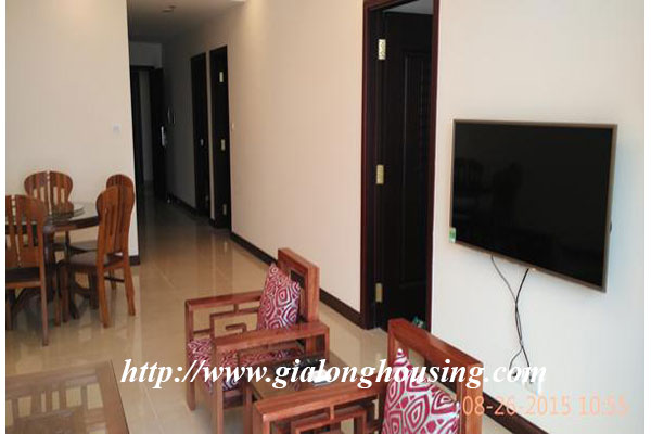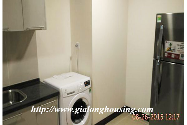 This apartment is located in high floor of R5 building, Royal City urban area, Thanh Xuan district. The view from balcony and windows is very beautiful. The total area is 105 sq m with 02 bedrooms and 02 bathrooms. The apartment is set up fully furnished with high quality furniture. The tenants can move in immediately.