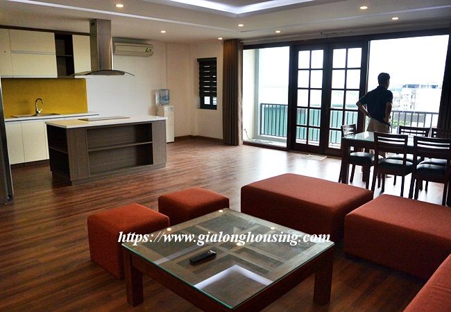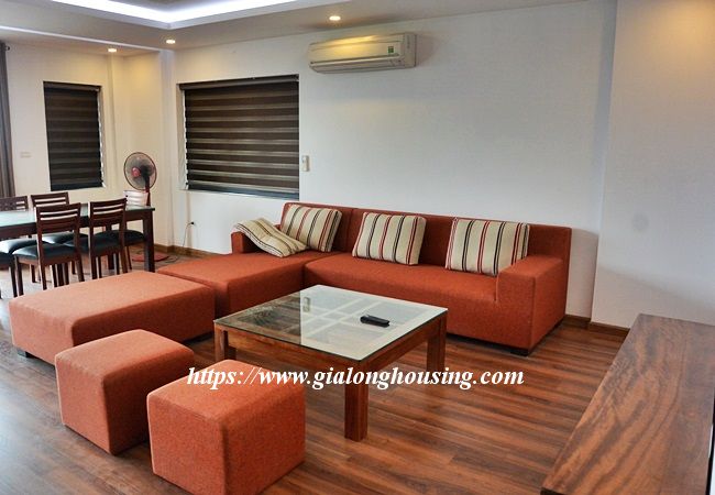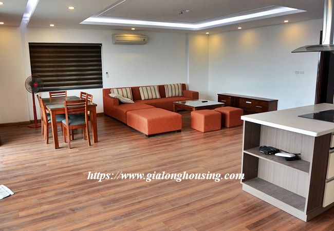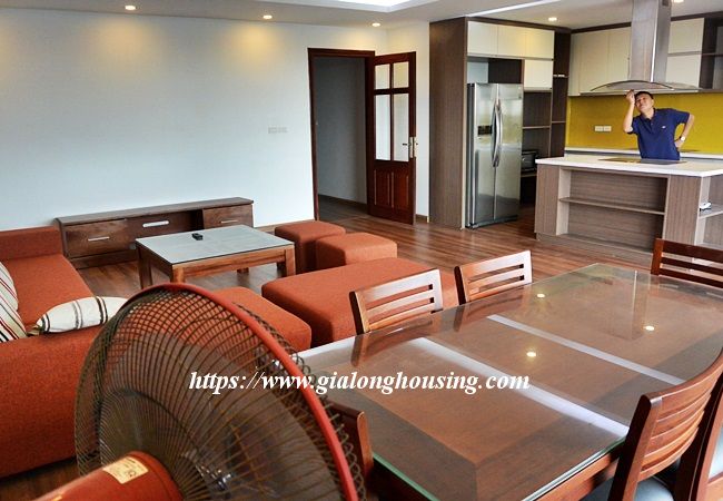 This new apartment is located in Xuan Dieu street, near Sheraton and Intercontinental 5 star hotels. The total area is 200 sq m , including 03 bedrooms and 03 bathrooms. The living room and the kitchen is combined. The bathroom is convenient with the washing machine and dryer. All rooms are fully furnished and you can move in immediately. The rent includes : cable TV, wireless internet and tap water.